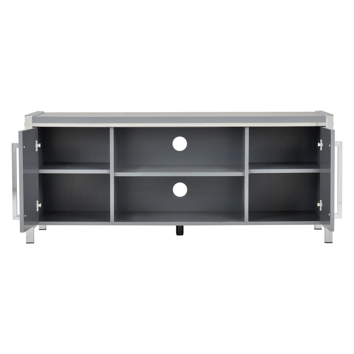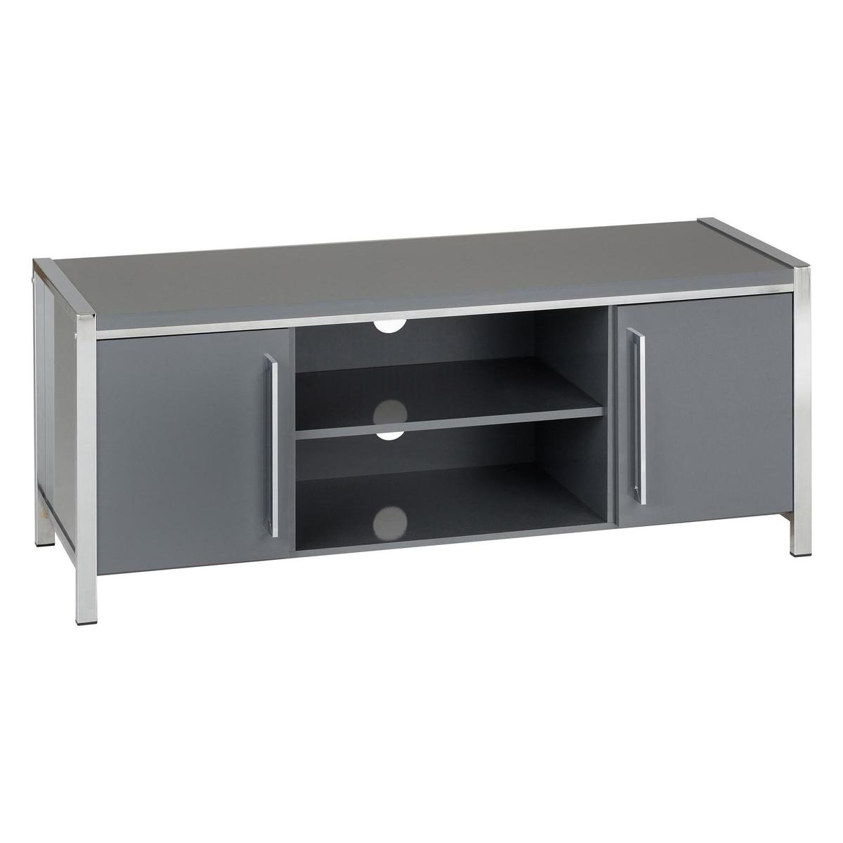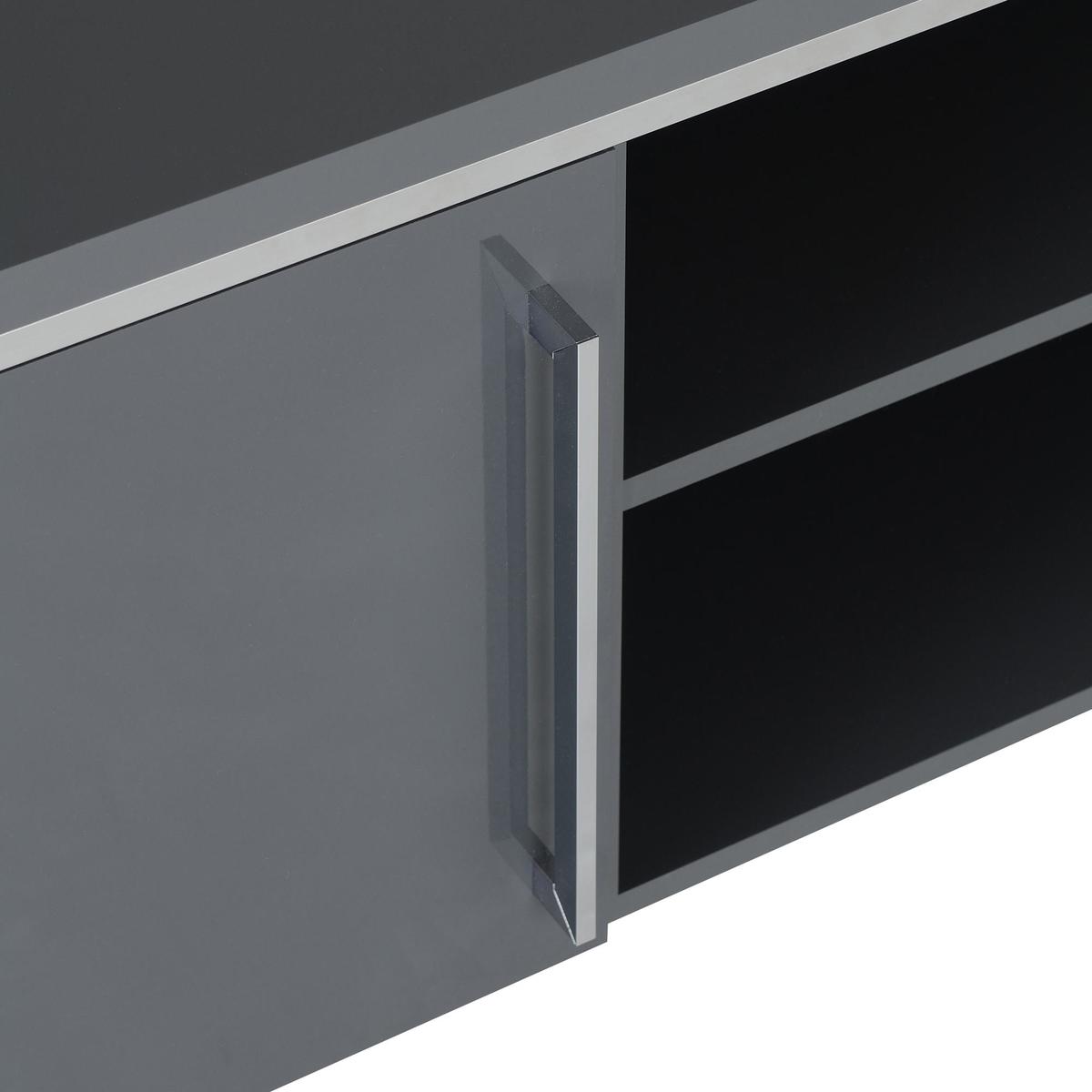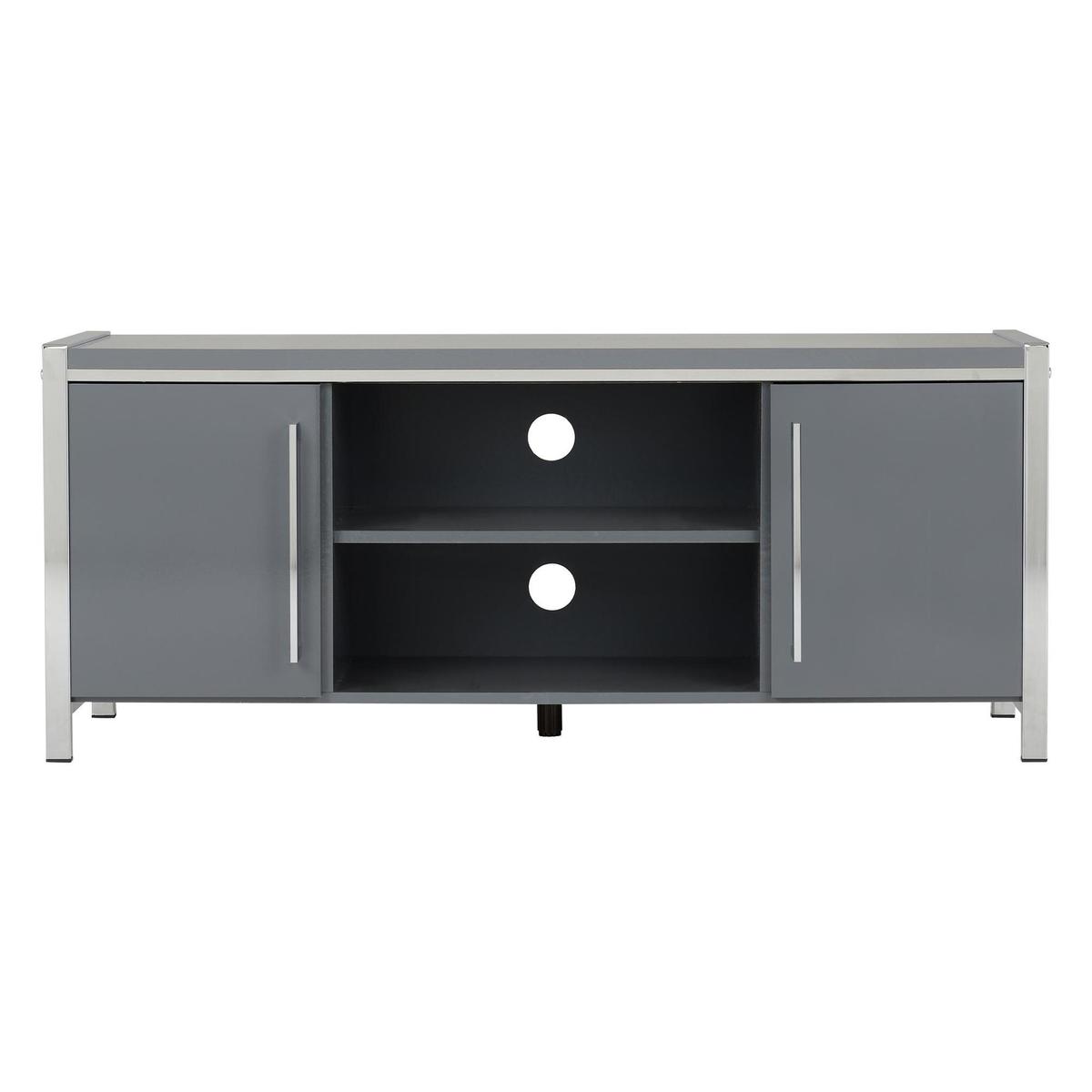 Offering a contemporary design, the Charisma TV stand comes in a choice of grey, black and white colourways, complete with a glossy finish and chrome legs and handles. Featuring two large open shelves with cable apertures, and two cupboards, this self-assembly TV stand comes with plenty of storage space and would be a great addition to any modern living space. Please note, unfortunately we cannot deliver this item to Northern Ireland and the Channel Islands.