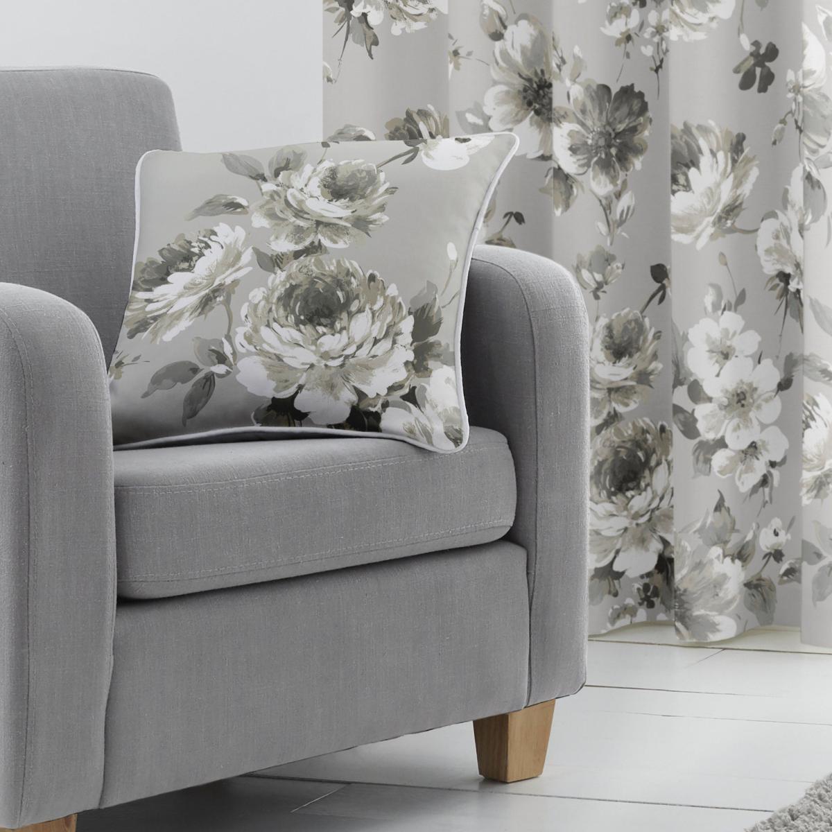 Crafted from 100% cotton for a beautiful texture, this elegant cushion is completed in a soft grey colourway and features a gorgeous printed floral design. This cushion is ideal to coordinate with the Charity eyelet curtains and features piped edging for a sophisticated finish. Designed with a removable and machine washable cover for easy care, this cushion is filled with plump and durable polyester to ensure lasting comfort and support.