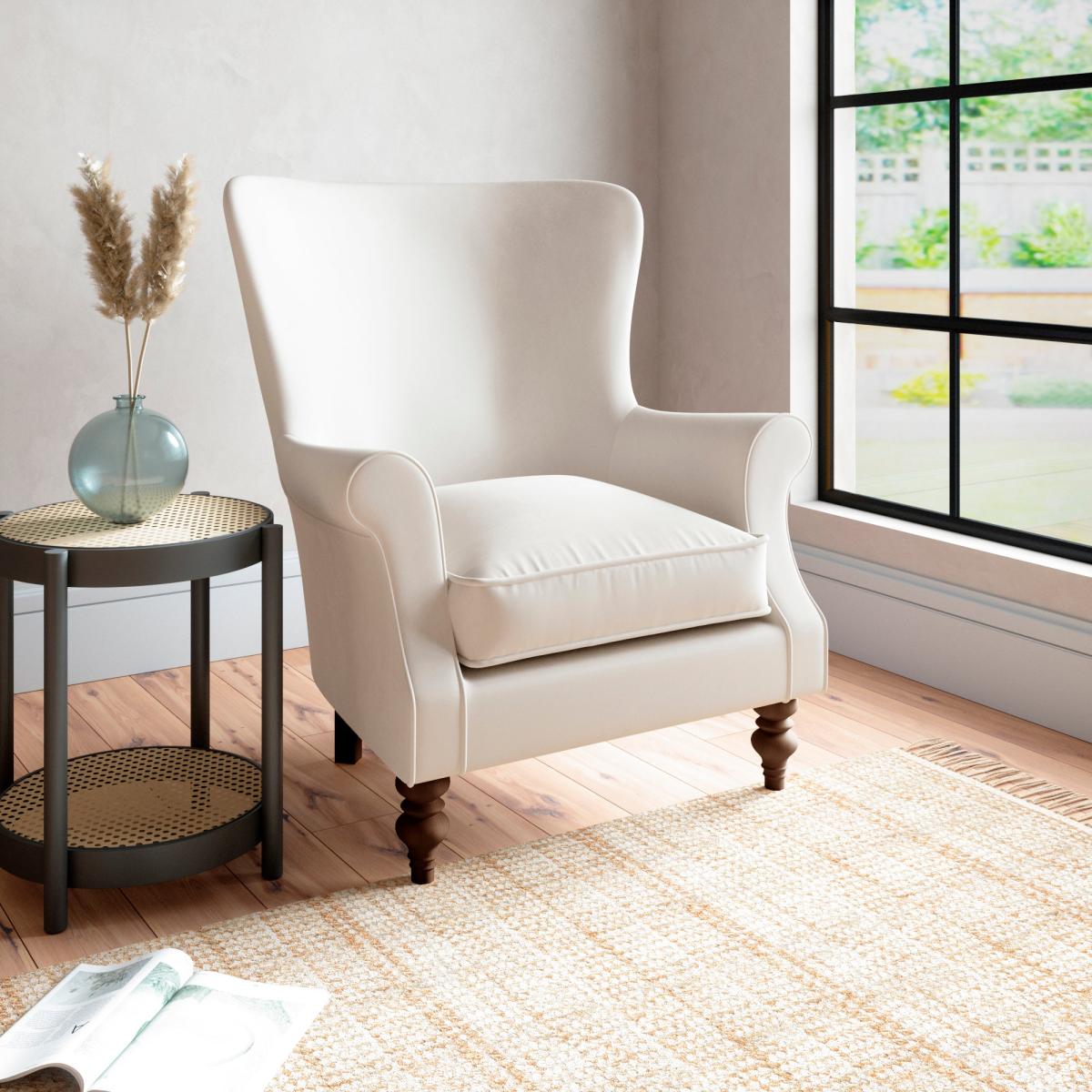 I love this armchair for its sophisticated combination of velvet luxury and timeless design. The Charlbury is versatile enough to work well in both classic and contemporary interiors, adding a touch of elegance to living rooms or cosy reading nooks. Its neutral tone makes it easy to style with colourful cushions or textured throws for added warmth. Practical styling tips include pairing it with a statement side table or layering with a plush rug to define the space. Its comfortable yet refined silhouette makes it a practical choice for those seeking both style and comfort.