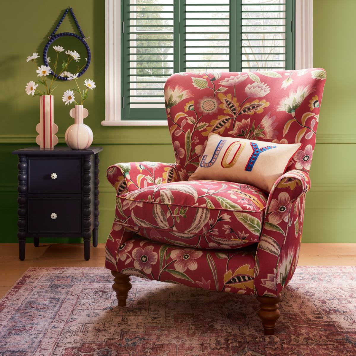 The Edited Life - Charlbury Joy Floral Armchair Upholstered in a choice of fabrics, the classic Charlbury armchair is designed to offer luxurious comfort with its Qualofill Blue filled seats. Offering an elegant design, this timeless armchair features a wingback design with scrolled arms, scalloped back, and front turned show-wood feet. The Charlbury armchair is finished in our vintage-inspired Joy Floral fabric and offers easy assembly; just attach the feet and you’re ready to relax. Made with recycled materials. As this product is made to order, it can only be returned if faulty or if not manufactured to the specifications given. For more information please view our full returns policyhere. Live well. Mean well. Be well. Many of us want to live simpler, more responsible lives. As we become more aware of our surroundings and understand how our choices contribute to the world around us, more people are choosing to consume less and curate more. The Edited Life introduces a new era of thoughtfulness in the home, with an understated collection of pieces chosen for their simple beauty, quality craftsmanship and innate usefulness that will last beyond any trend. Having it all is no longer the goal; having enough, and it being just right, is.