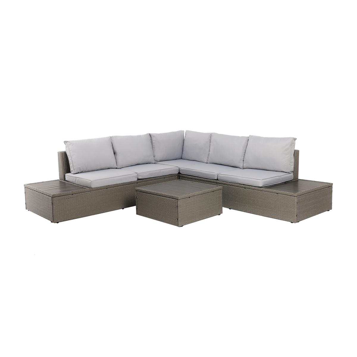 Add a contemporary feel to your outdoor living space, with this stunning 5 seater rattan and Polywood corner lounge set. Comprising of a two seater sofa and a three seater sofa, there's also amatching square table finished in rattan with a durable Polywood top. Completed with the Polywood topped table, you'll have everything you need to entertain guests outside on warm summer evenings. Constructed from highly durable, weatherproof variegated flat weave rattan, the two and three seatersofasare finished with matching light grey cushions, for added style and comfort. All easy to assemble and maintain, this set can be teamed up with other pieces of furniture from our popular rattan ranges and is ideal for conservatory and garden use.