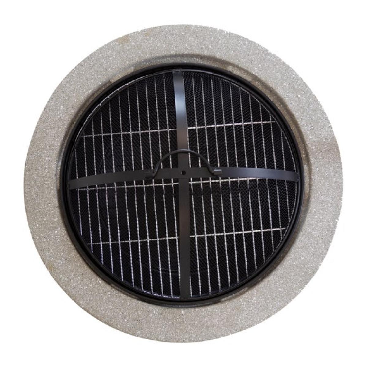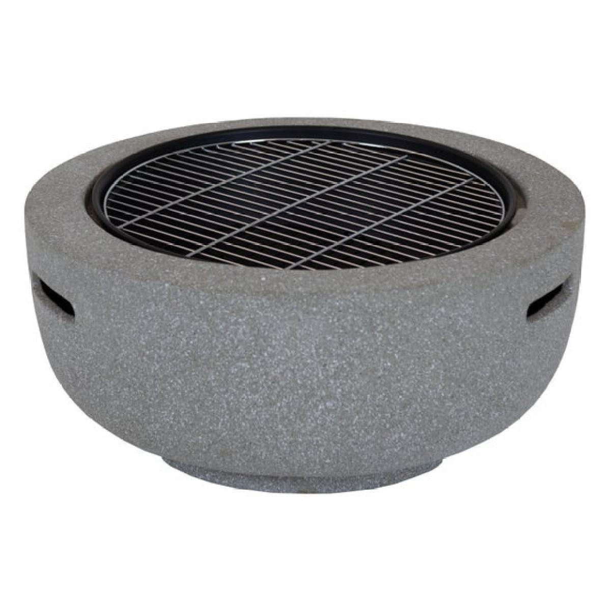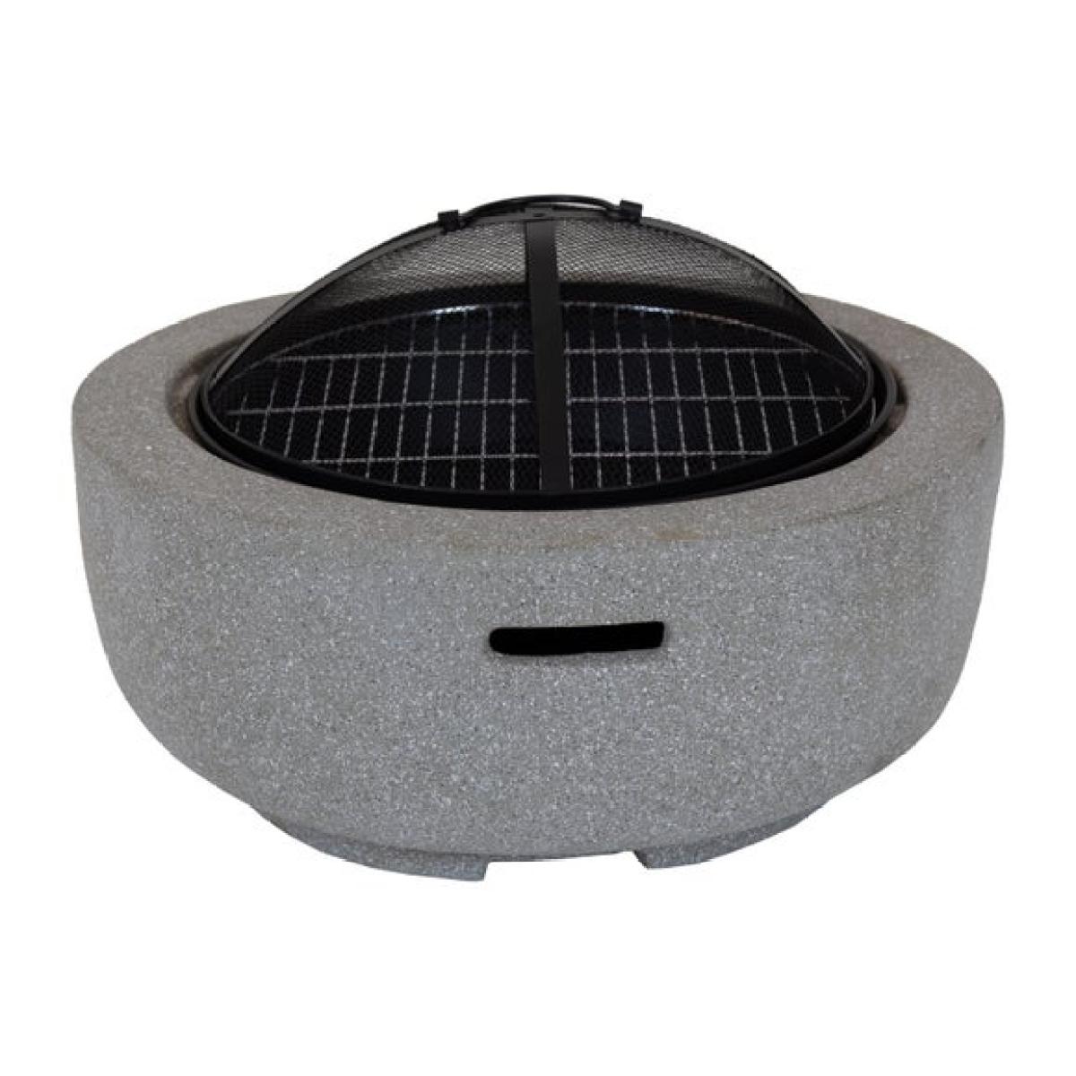 * Metal fire pit * Stone effect * Durable steel Bring a soft stone effect and practical design to your garden with this round fire pit. Lightweight yet strong, it is easy to move and simple to assemble. The mesh cover adds safety while the included grill opens up options for casual cooking.