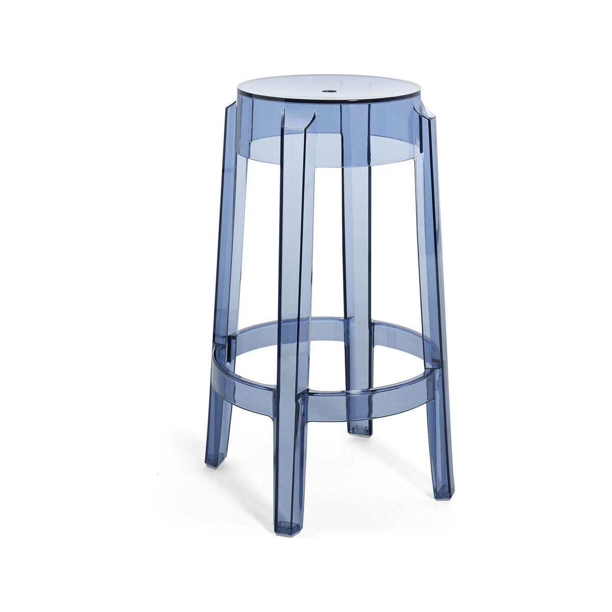 Icon by Philippe Starck… The Charles Ghost stool was born from the neo-classic lines of the Louis Ghost armchair. It combines classic lines inspired by the 16th century using a modern material: polycarbonate. A Grand Siècle style revisited thanks to this ultra-durable plastic material that allows this stool to be equally comfortable indoors and out. The lines of the legs are rounded and slightly curved. This high stool has great charisma and a strong personality. It imposes its elegance in modern or more classic environments. Stackable, stable and solid, it’s both refined and easy to live with! Polycarbonate is a very resistant, unbreakable material, but its surface remains fragile to micro-scratches, which are all the more accentuated by its transparent character. For cleaning, do not use a sponge with a scraper, but a soft sponge.