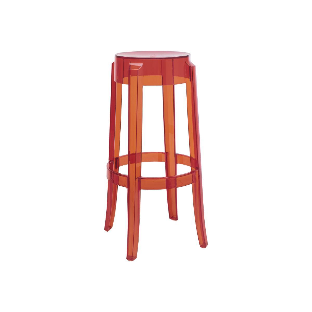 Return to the preludes of the '' Starckien'' design when the designer drew lengthened and round lines. Charles Ghost is an icon of the classical stool, it recalls the form of the seats of the XIXeme century: the line of the feet is round and lightly huddled. This stool completely transparent and colored has a strong aesthetic impact. It is constituted of a transparent monobloc in polycarbonate. It adapts himself to all the environments: prived or collective. It marries himself with all furniture type. It exists in 3 different heights (46 cm, 65 cm, 75 cm) and is declined in several coloris: transparent, black smoked, green, yellow, orange, pink and blue sky.