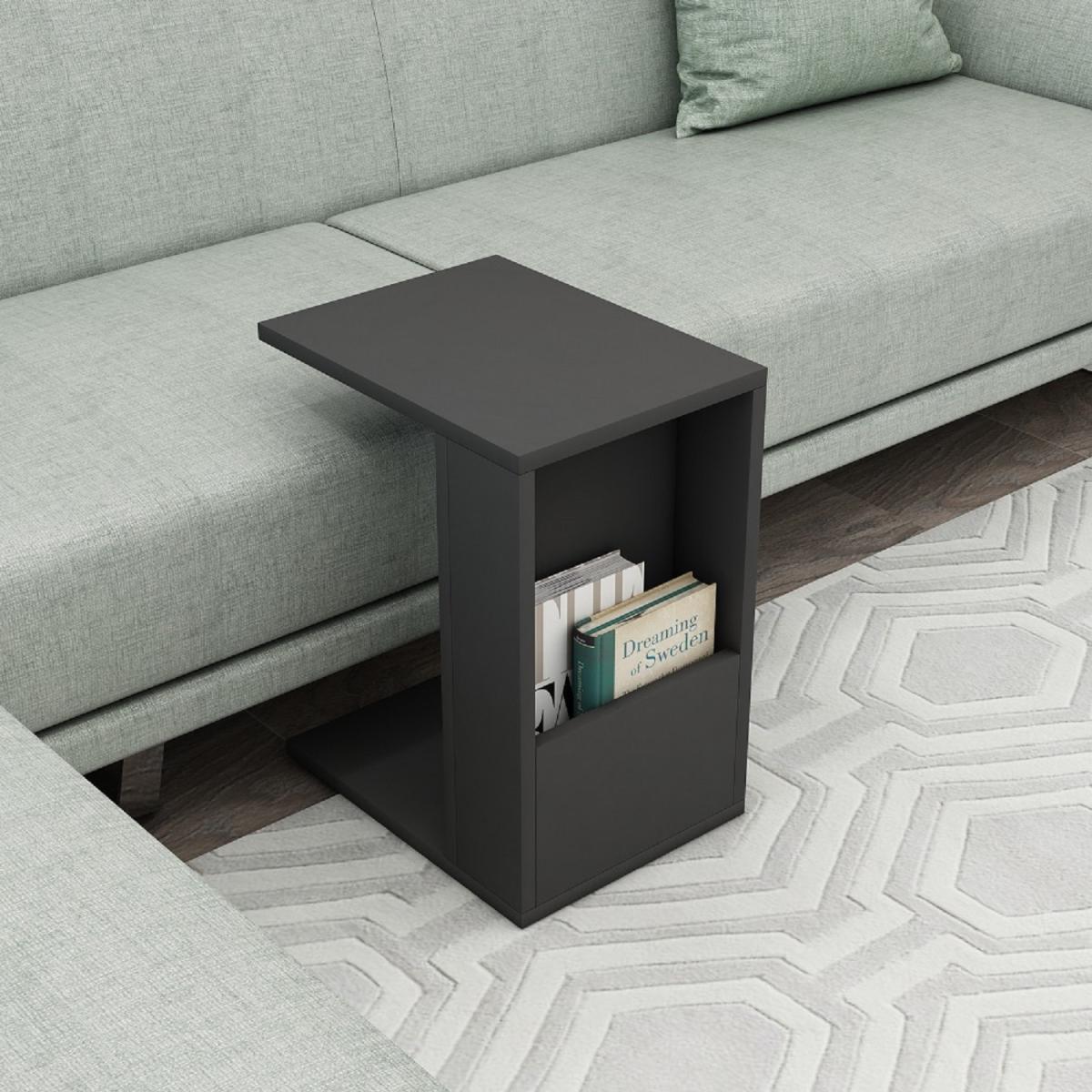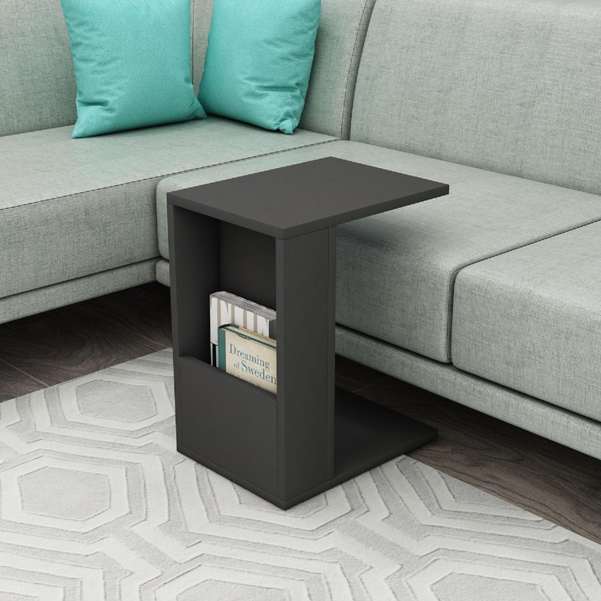 Charles Side End Table with Storage Shelf - Anthracite / Metal PVC Particle Board Plastic