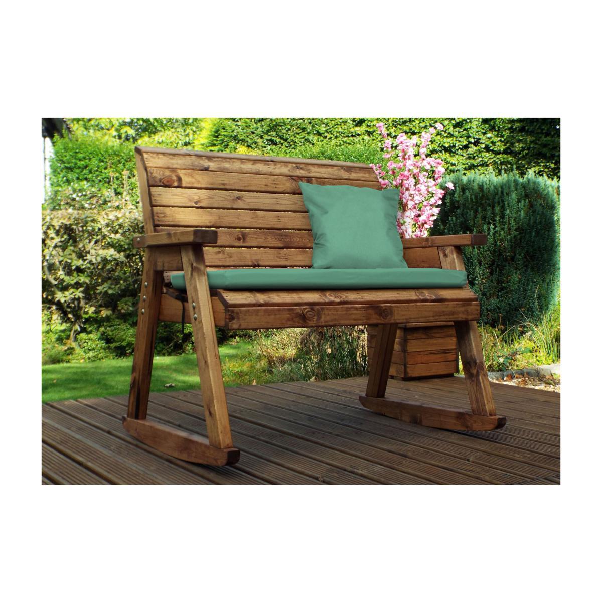 Charles Taylor 2 Seater Wooden Rocking Bench with Green Seat Pads Brown