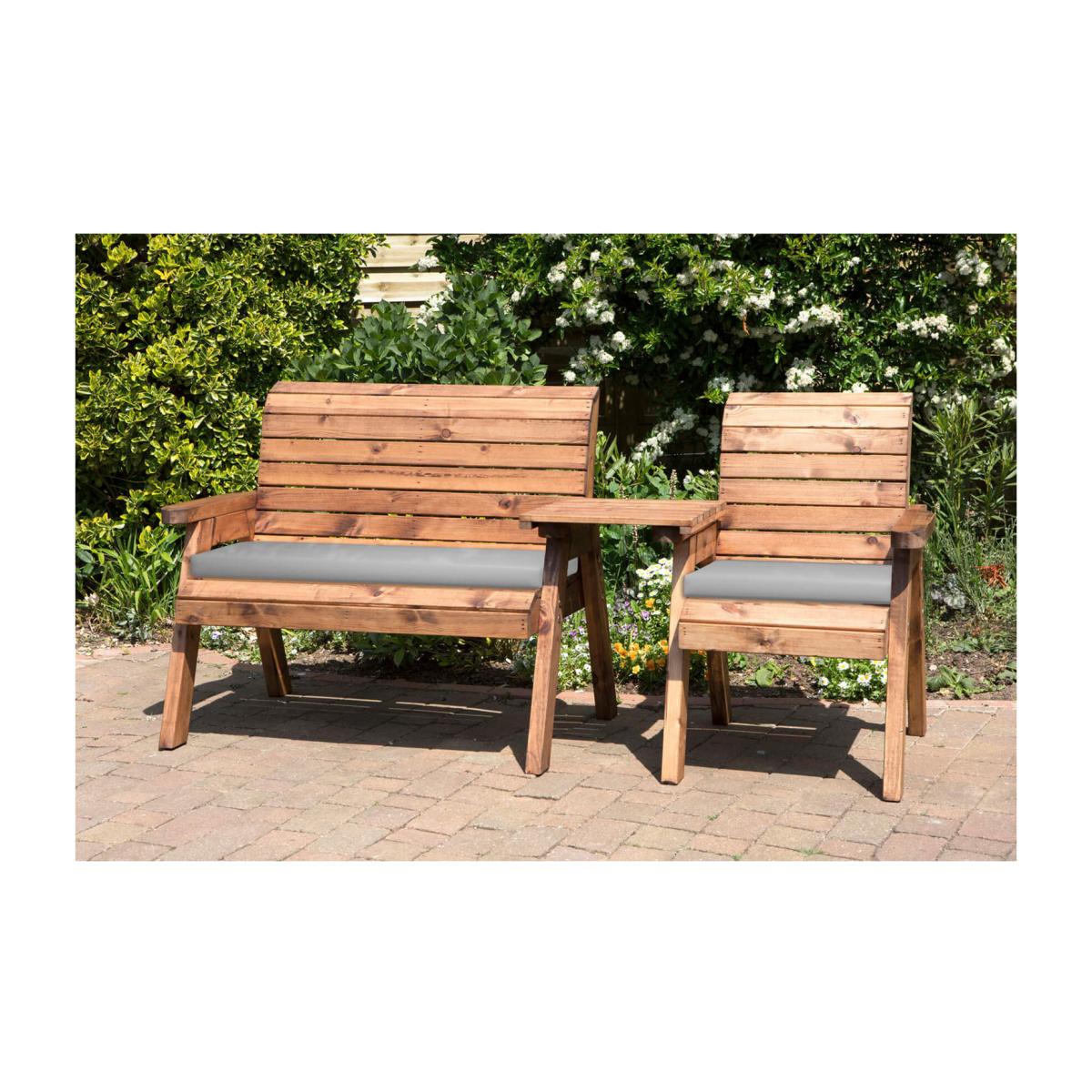 A charming addition to your garden, this four-seater companion bench is the perfect way to spend some time outside with loved ones. Featuring a single chair and three-seater bench with a straight detachable tray, you can sit back and relax with a drink or a book in this traditional style "love" seat. The perfect combination of style and practicality, this strong companion bench is crafted from sturdy Scandinavian redwood and coated with an oil-based preservative so it's built to last. Constructed with rustproof, galvanised zinc bolts, this bench will not let you down. No assembly is required as this piece is fully assembled and will be ready for you to enjoy straight away. This set comes with waterproof cushions.