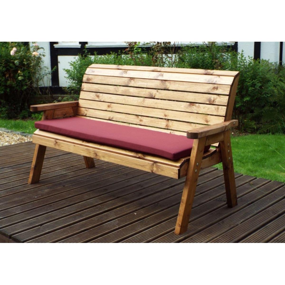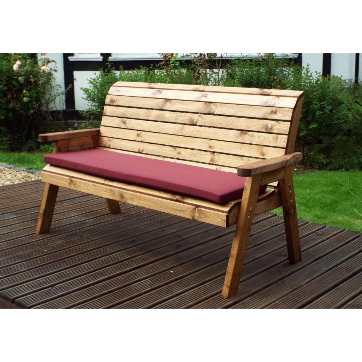 The Charles Taylor Traditional Wooden Three Seater Bench is perfect for a growing family to relax and enjoy the warmer months, an ideal feature to add next to your garden pond or overlooking your flower beds and provides extra seating for when guests come over for a BBQ. Crafted from sturdy Scandinavian Redwood dipped in oil-based preservative with rustproof zinc bolts, this bench perfectly combines style and practicality. Enjoy this bench as soon as it arrives thanks to the assembly service from Charles Taylor's professional delivery team. Set Includes: 1 x Three Seater Bench 1 x Bench Cushion (Green, Grey or Burgundy) 1 x Fitted Cover Features: Spacious seating for three 10 year rot free guarantee Treated with an oil based water repellent preservative All materials FSC-Sourced Specifications: Dimensions:D 740mm x W 1700mm x H 980mm Weight: 28kg Weight limit: 250kg Seat height off ground: 460mm Internal arm depth: 1510mm All screens vary in colour reproduction and whilst every effort has been made to display the colour as accurately as possible it is for guidance only.