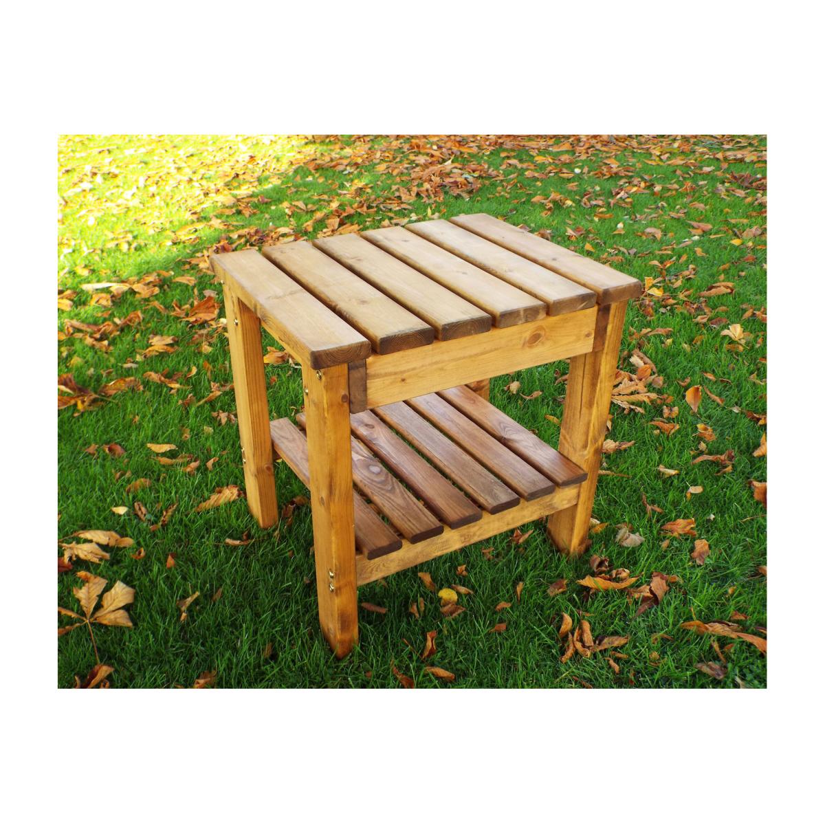A great addition to any outdoor space, this Charles Taylor companion table is perfect for turning a patio or lawn into somewhere you can relax. Made from tough and durable timber and rustproof galvanised zinc bolting, this piece of furniture is designed to give you years of outdoor enjoyment while adding a rustic yet contemporary look to your garden. Finished in a natural styling with stain already applied, you'll find this table sits nicely in with almost any style of outdoor decor.