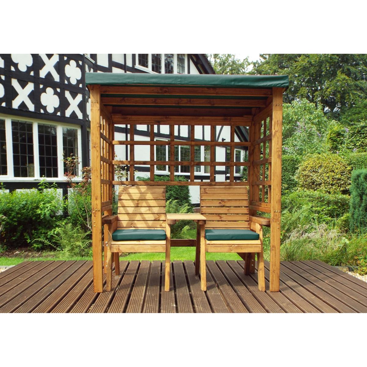 Please note, the Footstools and planters are for illustration purposes only, to show how the swing can be extended. These are not included in this price. This Charles Taylor Henley Twin Arbour is perfect for a growing family to relax and enjoy the warmer months, a ideal feature to add next to your garden pond or overlooking your flower beds and provides extra seating for when guests come over for a BBQ. Crafted from sturdy Scandinavian Redwood dipped in oil-based preservative with rustproof zinc bolts, this bench perfectly combines style and practicality. ;Enjoy this bench as soon as it arrives thanks to the assembly service from Charles Taylor's professional delivery team. Set Includes: 1 x Henley Twin Arbour 2 x Chair Cushion (Green, Grey or Burgundy) Features: Versatile removable seating Detachable Waterproof roof Complete with joining table Classic English design 10 year rot free guarantee Treated with an oil based water repellent preservative All materials FSC-Sourced Specifications: Dimensions: D 1720mm x W 810mm x H1930mm Weight: 72kg Weight limit per chair: 130kg Seat height off ground: 460mm Internal arm width: 510mm We advise removal of the canvas shade cover during inclement weather to prevent damage due to water pooling. All screens vary in colour reproduction and whilst every effort has been made to display the colour as accurately as possible it is for guidance only.