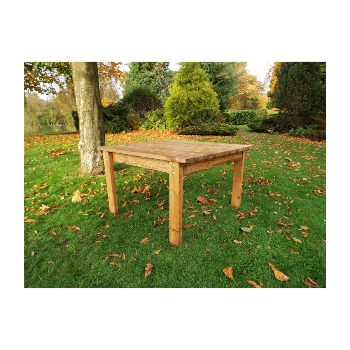 A great addition to any outdoor space, this Charles Taylor traditional coffee table is perfect for turning a patio or lawn into somewhere you can relax. Made from tough and durable timber and rustproof galvanised zinc bolting, this piece of furniture is designed to give you years of outdoor enjoyment while adding a rustic yet contemporary look to your garden. Finished in a natural styling with stain already applied, you'll find this table sits nicely in almost any style of outdoor decor.