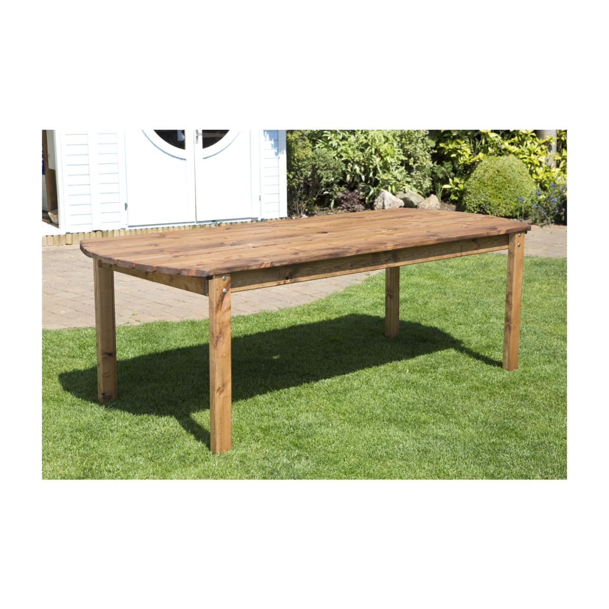 Make use of your garden this summer with this large high-quality wooden dining table. Crafted from sturdy Scandinavian Redwood dipped in oil-based preservative with rustproof zinc bolts, this dining table perfectly combines style and practicality. Traditional Rectangular table complete with ready drilled hole for parasol. Just add chairs from Charles Taylor to complete your bespoke dining preferences.