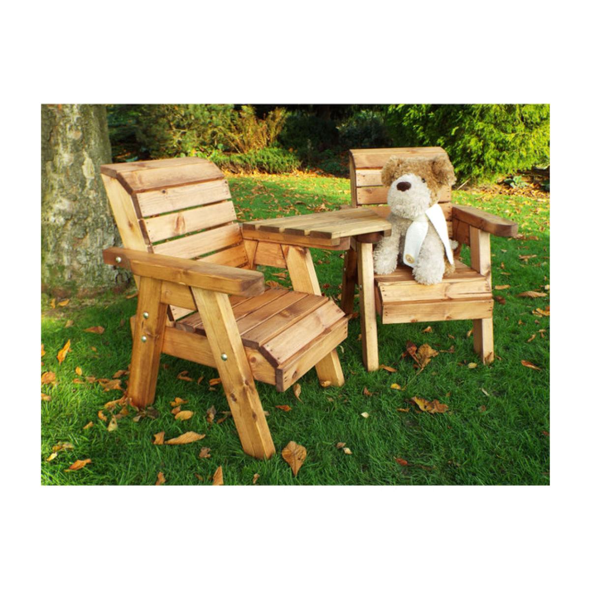 The Charles Taylor Little Fellas Children's Twin Wooden Chair Companion Set comes with an angled tray and would look great in a cosy corner of the garden next to your kids' favourite play area, add some outside furniture specially designed for kids to create a homely play area. Crafted from sturdy Scandinavian Redwood dipped in oil-based preservative with rustproof zinc bolts, this chair companion set perfectly combines style and practicality.