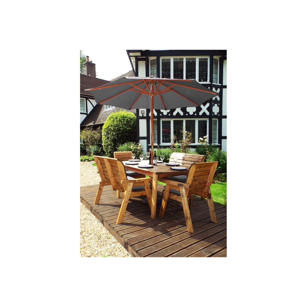 This Charles Taylor six seater rectangular table set is a great addition to your outdoor space for a touch of style and somewhere to relax. This outdoor dining set is constructed from tough and durable approved timber so it's built to last, giving you years of outdoor enjoyment. The set comes complete with seat cushions, a cushion storage bag, a matching 2.7m parasol and a parasol base. Perfect for decking out your garden with everything you need. Available in either a green or burgundy set, the cushions and matching parasol give you a complete and altogether look to compliment your outdoor dcor. With seat cushions providing comfort, the 2.7m parasol giving you shade and the parasol base holding it in place, this set has everything you need for relaxing in your garden.