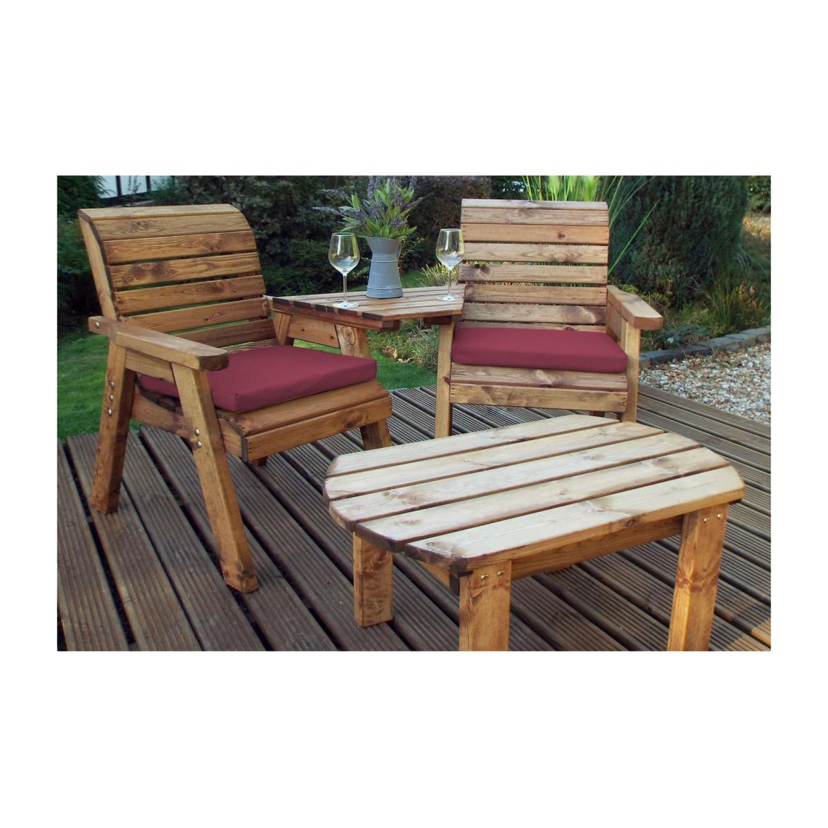 Charles Taylor Deluxe Wooden Lounger Set with an angled tray, coffee table and waterproof cushions is perfect for a patio or decking area in the garden for a cup of tea and slice of cake with a friend or partner. Crafted from sturdy Scandinavian Redwood dipped in oil-based preservative with rustproof zinc bolts, this lounger set perfectly combines style and practicality. The detachable angled tray means you can use the 2 loungers separately when desired.