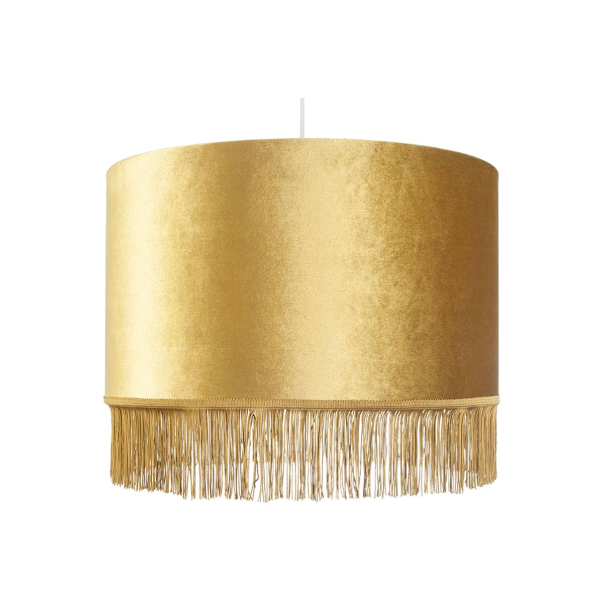 A luxurious choice, this 40cm cylinder shade boasts a glamerous mustard velvet finish. Crafted in a luxurious and tactile mustard coloured velvet with a matching faux cotton lining, this shade has an added element of glamour with tassel trim detailing which will filter the light beautifully. Add a statement accent to any ceiling, this stunning shade is set to be the envy of all your guests.