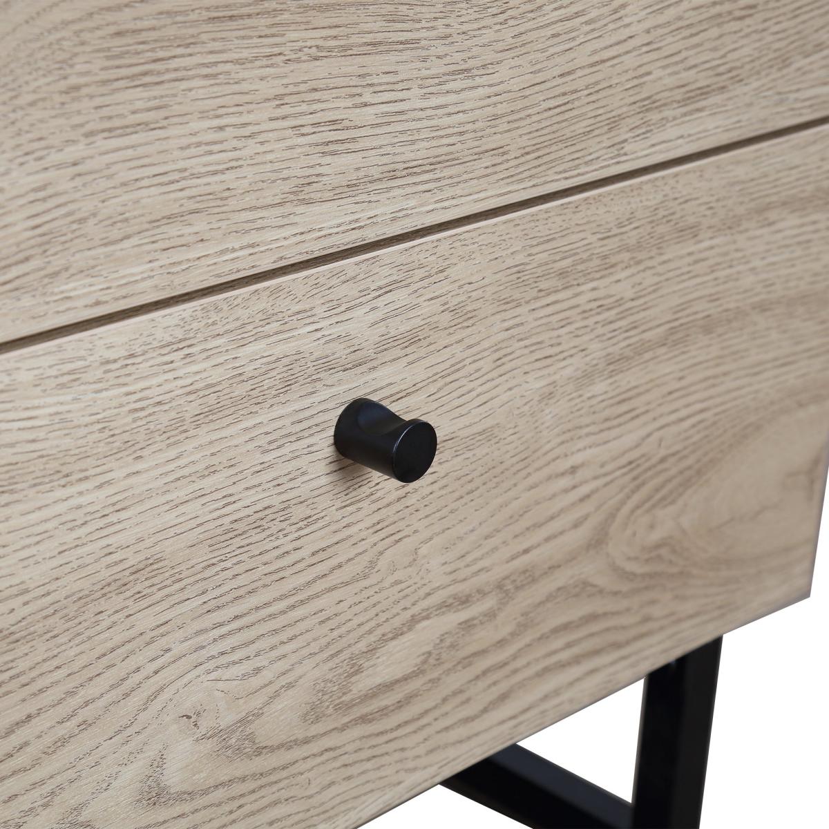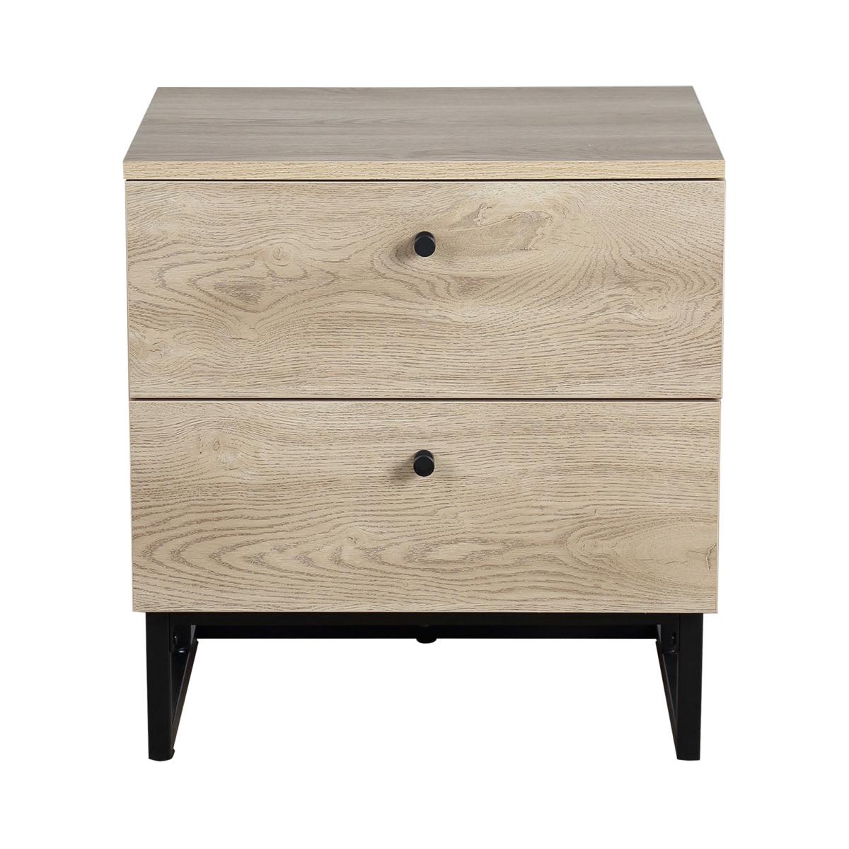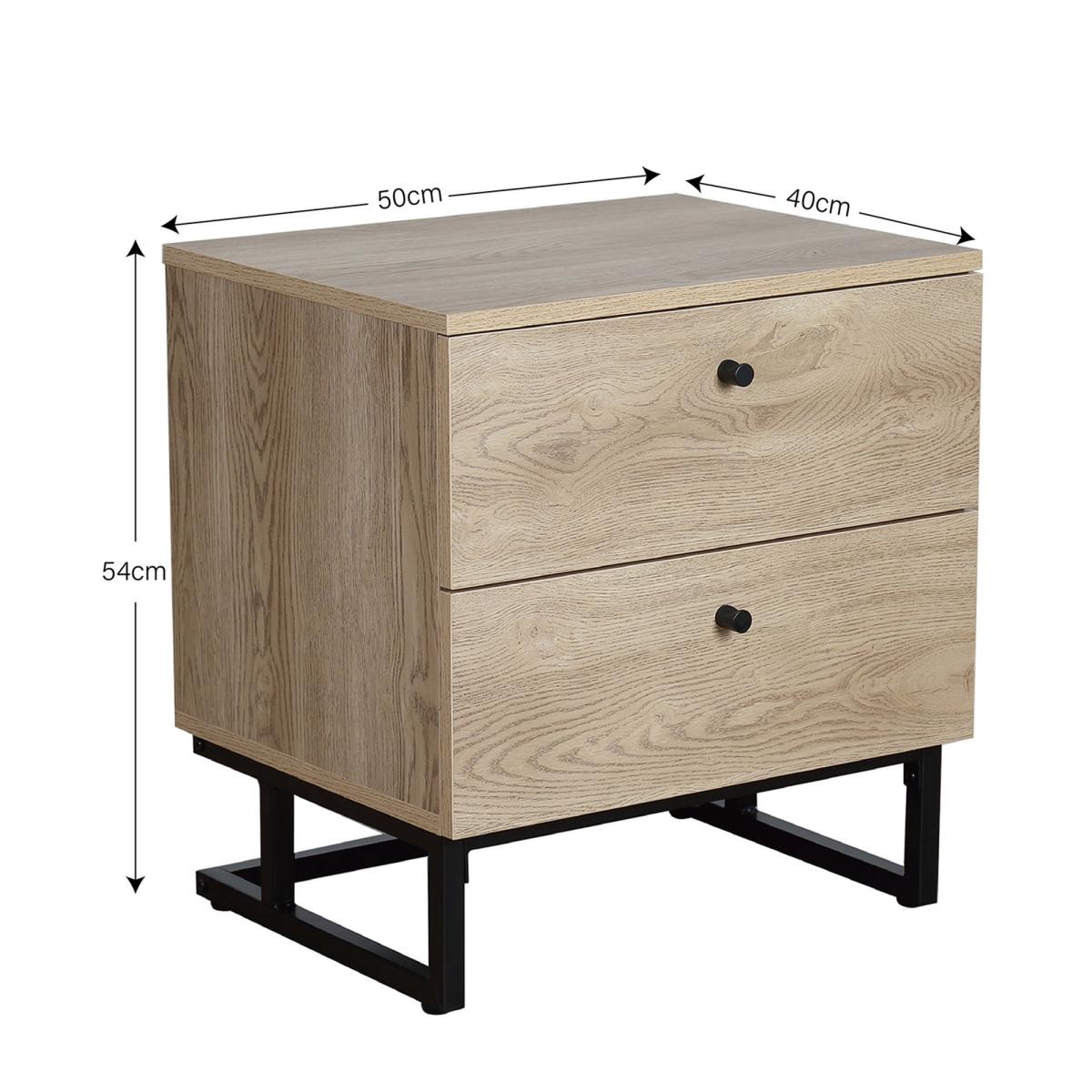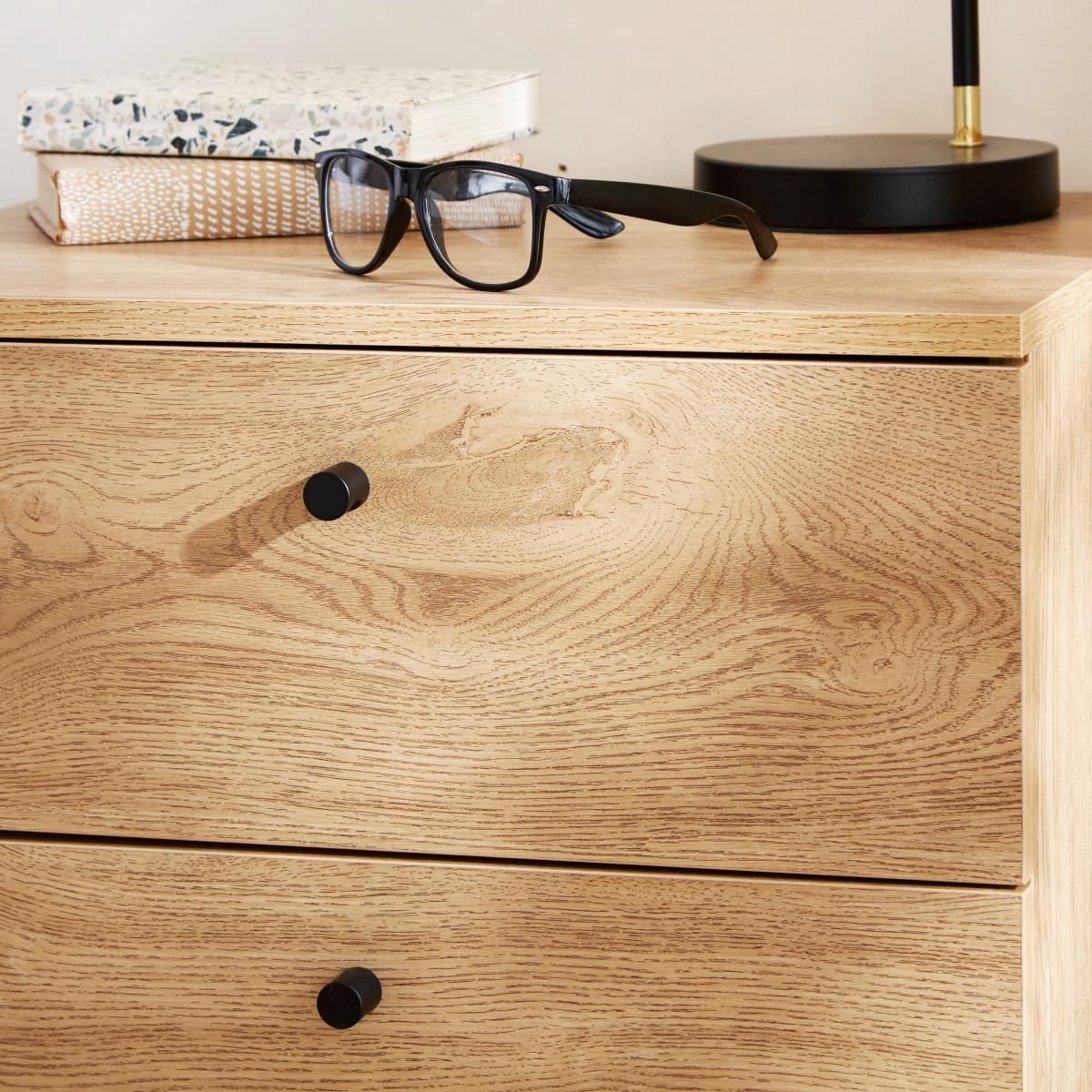 With the Charlie, your bedroom situation is golden. Its 2 spacious drawers are perfect for your bedtime books, skincare, and more, while the striking black metal legs and knobs add a touch of glamour to your space. The oak effect finish makes it easy to match with any decor so that you can create your dream bedroom in just about any style.