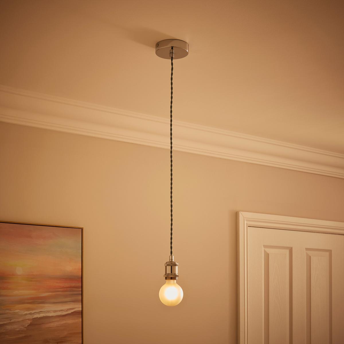 This stylish flex fitting with anindustrial look can be mixed matched with our range of decorative bulbs and easy-fit pendants and will complement an array of home decors beautifully. It is compatible withdimmable lighting and adjustable, making it both practical and attractive and other coloursand matching family items are also available. Please note, the bulb is not included. Maximum LED wattage 7w.