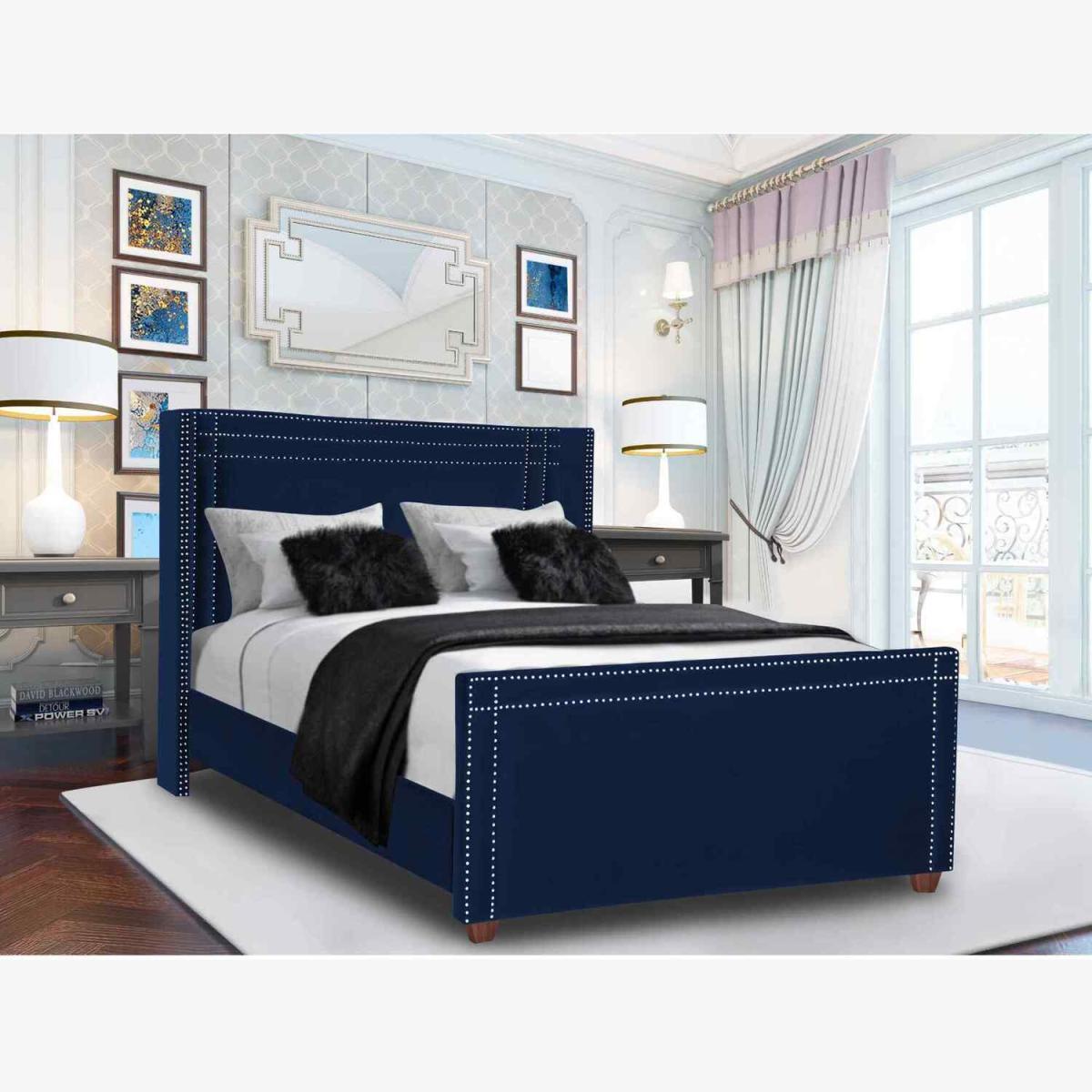 This designer bed creates a modern and contemporary look to your room, classic wingback style accompanied with detailed beading, handcrafted and made in the UK this bed has the wow factor. Elegant beading all around the bed with metal feet. Solid construction with solid slats. Wingback styled headboard and a padded finish.