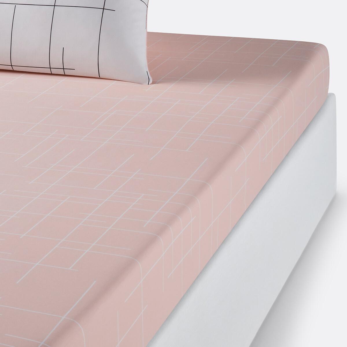 The Charline patterned fitted sheet. Irregular lines in soft and on trend tones. Cotton is part of our daily lives. We love it for its suppleness and softness. Easy Care, it is ideal for the beds of young and old alike!Product Details • 100% cotton • 144 thread count • For mattress height 25cm • Elastic edging on the fitted sheet • White striped pattern on pink background. Care Advice • Machine washable at 60°C • By washing your laundry at 40°C instead of 60°C, you limit energy consumption. Dimensions • 90 x 190cm: Single • 140 x 190cm: King • 160 x 200cm: King • 180 x 200cm: King • OEKO-TEX® Standard 100. Standard 100 certification by OEKO-TEX® tests textile products for harmful substances via an independent, international label.