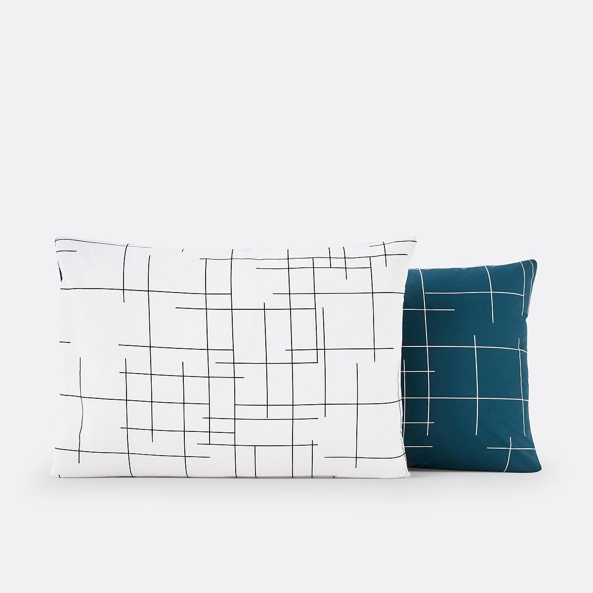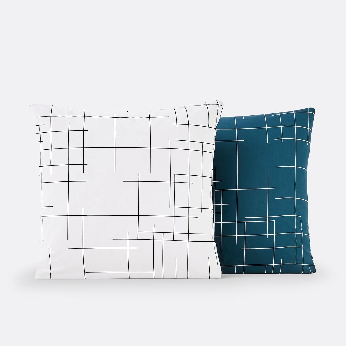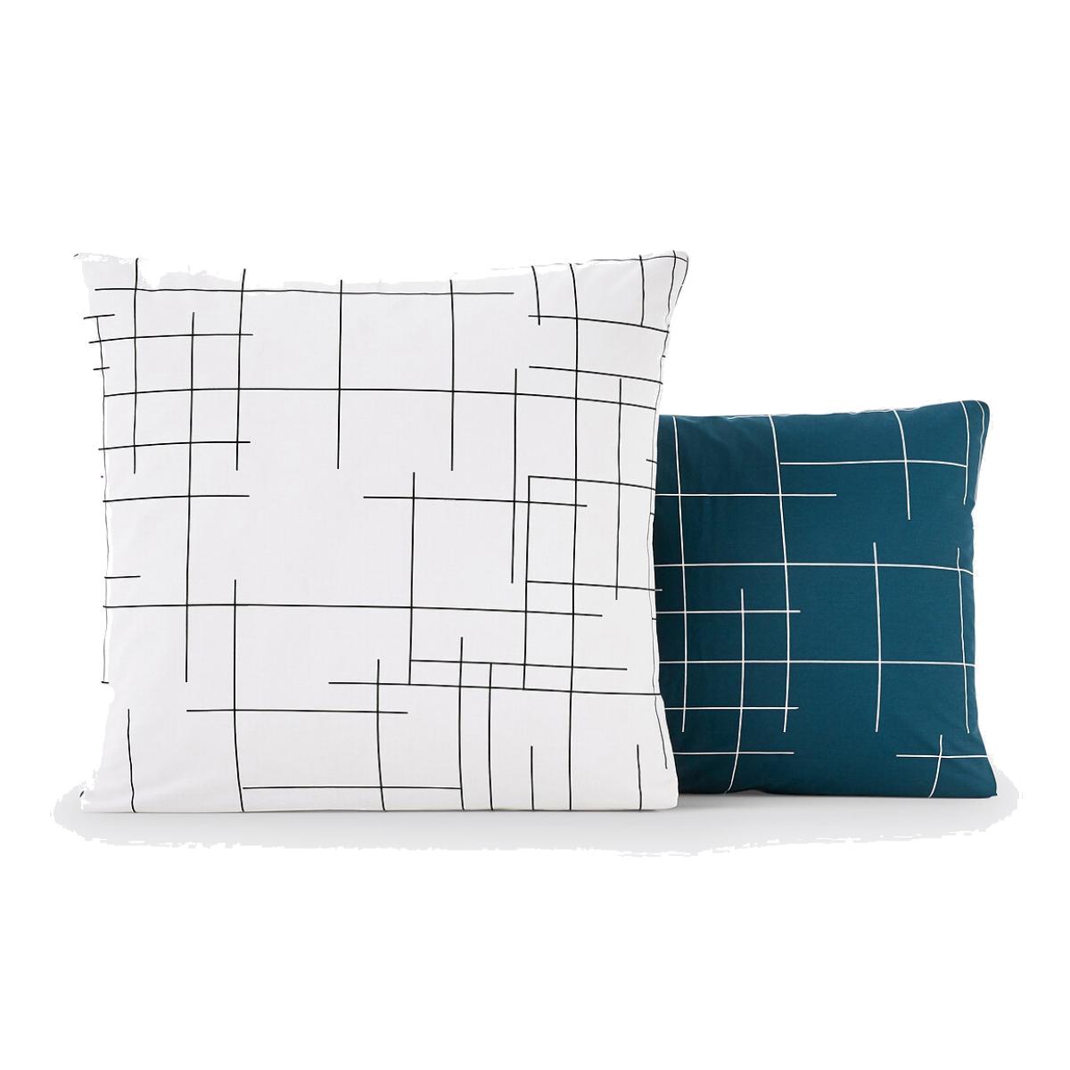 This Charline reversible pillowcase will add modern simplicity to your home. Irregular lines in soft and on trend tones. Cotton is part of our daily lives. We love it for its suppleness and softness. Easy Care, it is ideal for the beds of young and old alike!Product Details • 100% cotton • 144 thread count • Square or rectangular pillowcase in sack shape • Front: black bars on white, front: white bars on Prussian blue Care Advice • Machine washable at 60°C • By washing your laundry at 40°C instead of 60°C, you limit energy consumption. Dimensions • 50 x 70cm: Rectangle cover • 63 x 63cm: Square cover • OEKO-TEX® Standard 100. Standard 100 certification by OEKO-TEX® tests textile products for harmful substances via an independent, international label.