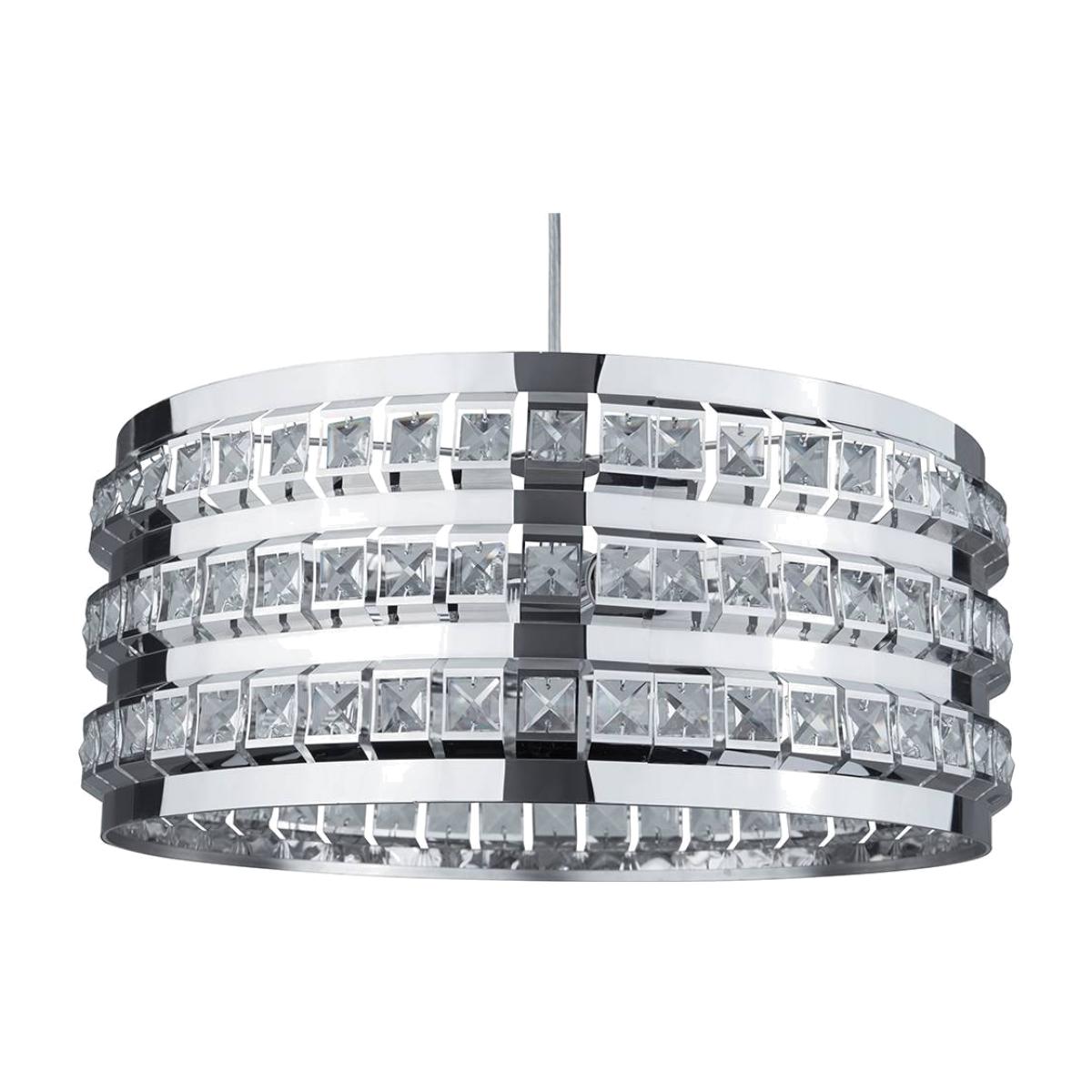 Glamorous pendant light boasting a polished chrome finish. A beautiful addition to your home, this pendant ceiling light is part of the Charlize range from Pagazzi Lighting. Finished in polished chrome, this fitting boasts a round shape with 3 layers of crystal glass beading, with each square glass piece held within it's own frame. Offering a sparkly diffusion of light when lit, this height adjustable fitting is ideal for homes boasting contemporary home decor and is set to look great in lounges, hallways, dining rooms and bedrooms. Pagazzi recommends using our E14 4w LED Clear Candle bulbs for a crisp, clean light.