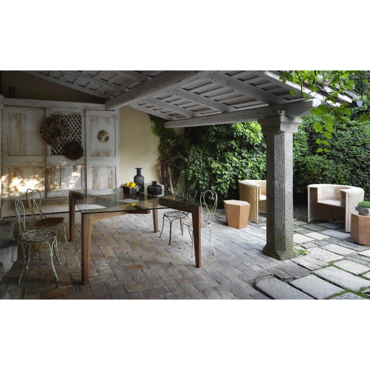 The hallmark of Mario Botta's architecture, characterized by purely geometric and cleverly interconnected volumes, is clearly visible in the Charlotte chair. The cylindrical element is the starting point that, in the upper section, extends up inside to create a chair that seems suspended in mid-air. The large yet empty volumes make Charlotte a monolithic yet lightweight chair. Hand woven with thin, constant-section natural wicker, the Charlotte line is suitable for both domestic and commercial environments.