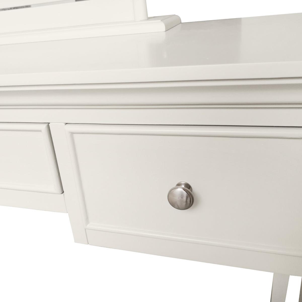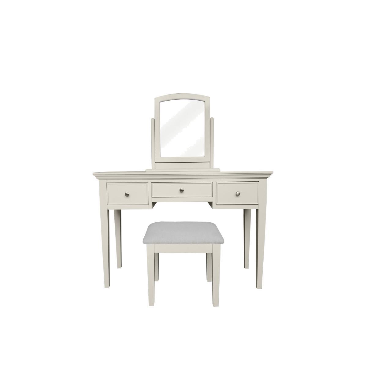Dunelm Exclusive - Designed and Developed by Dunelm. Elegantly crafted with a natural lacquer coating, the Charlotte range features a natural colourway with complementing grey and white tones and a stylish grooved finish. Designed to host a range of interiors, this range comes complete with contrasting round metal handles. Complete with a stylish matching stool, this dressing table set features solid rubberwood legs and three ample size drawers with adjustable vanity mirror. Care instructions: Wipe clean any spills immediately with a damp cloth, avoid harsh solvents or abrasives as this can damage the product. Maintain brass and metal by regular dusting and cleaning with mild soapy water, do not use brass cleaner as this will damage the lacquer. Avoid exposure to direct sunlight.