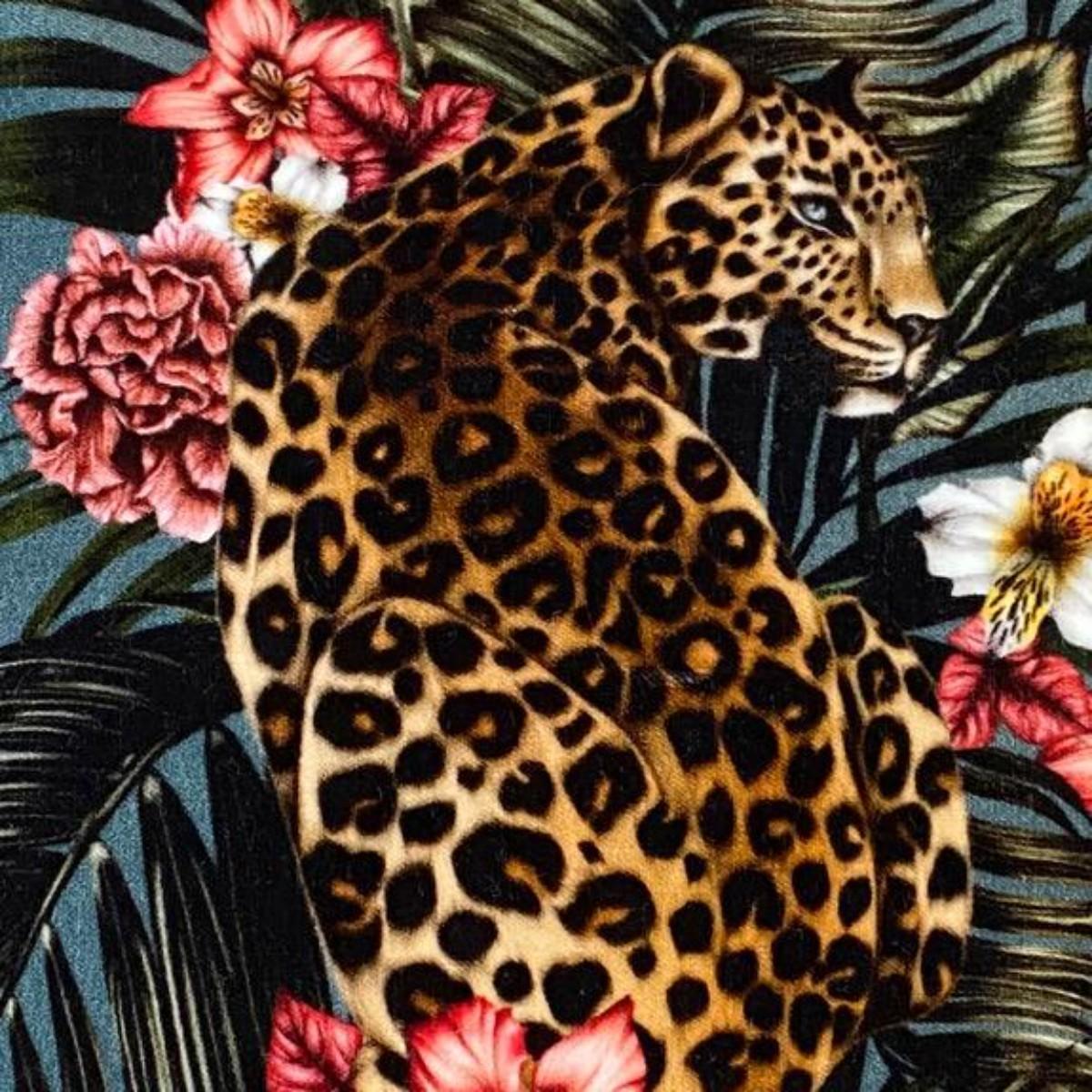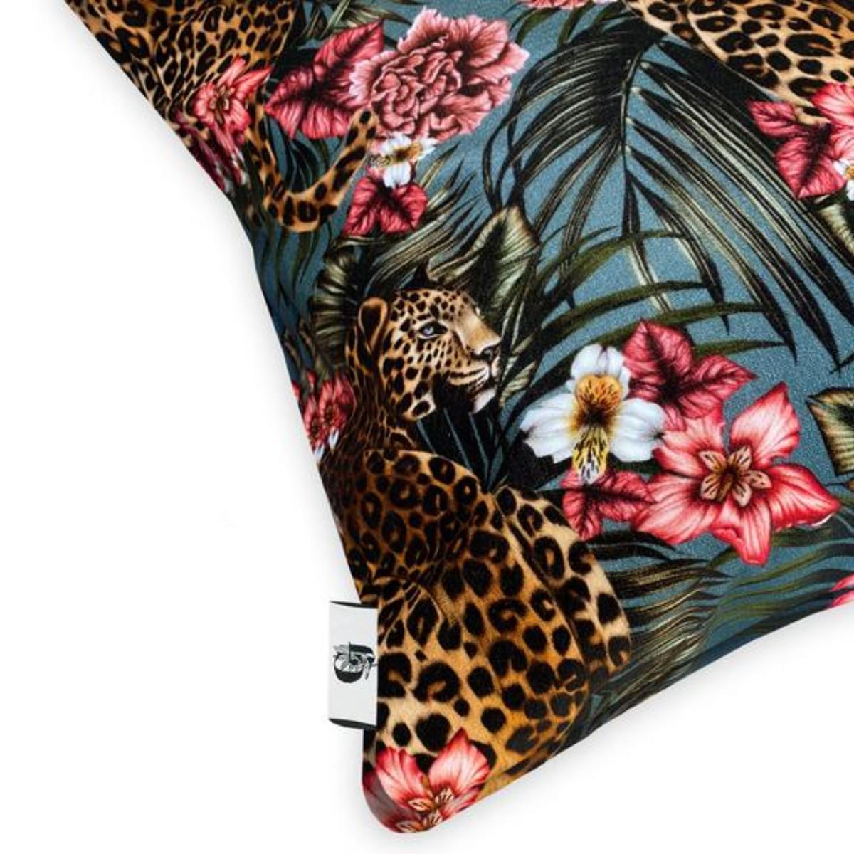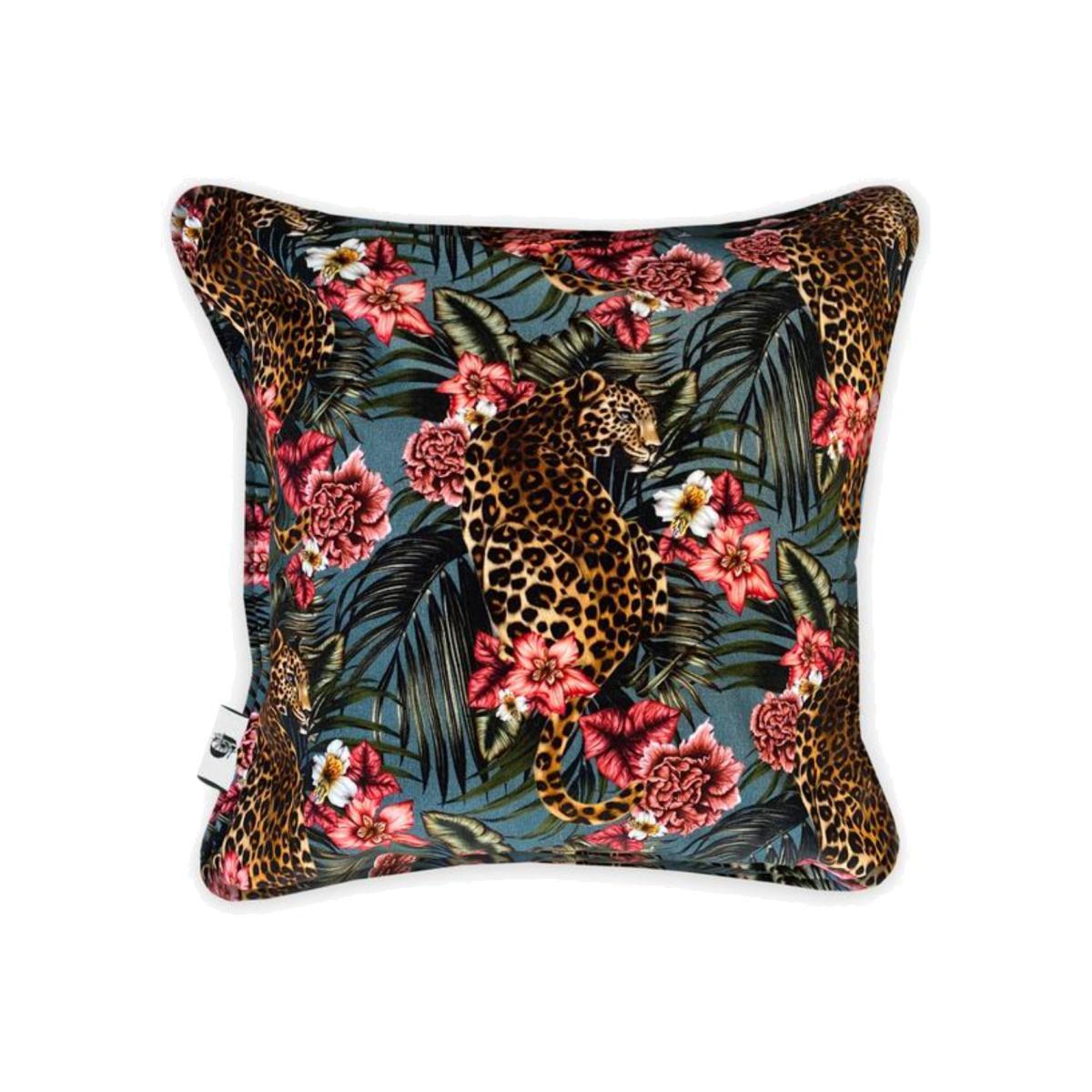 Be dazzled by our Panthera Paradise velvet cushion which celebrates the stunning beauty of the Asian Leopard. With beautiful botanicals and flourishing foliage, paired with a deep teal green background, this dreamy, nostalgic pattern will take you back to that place you call Paradise!.