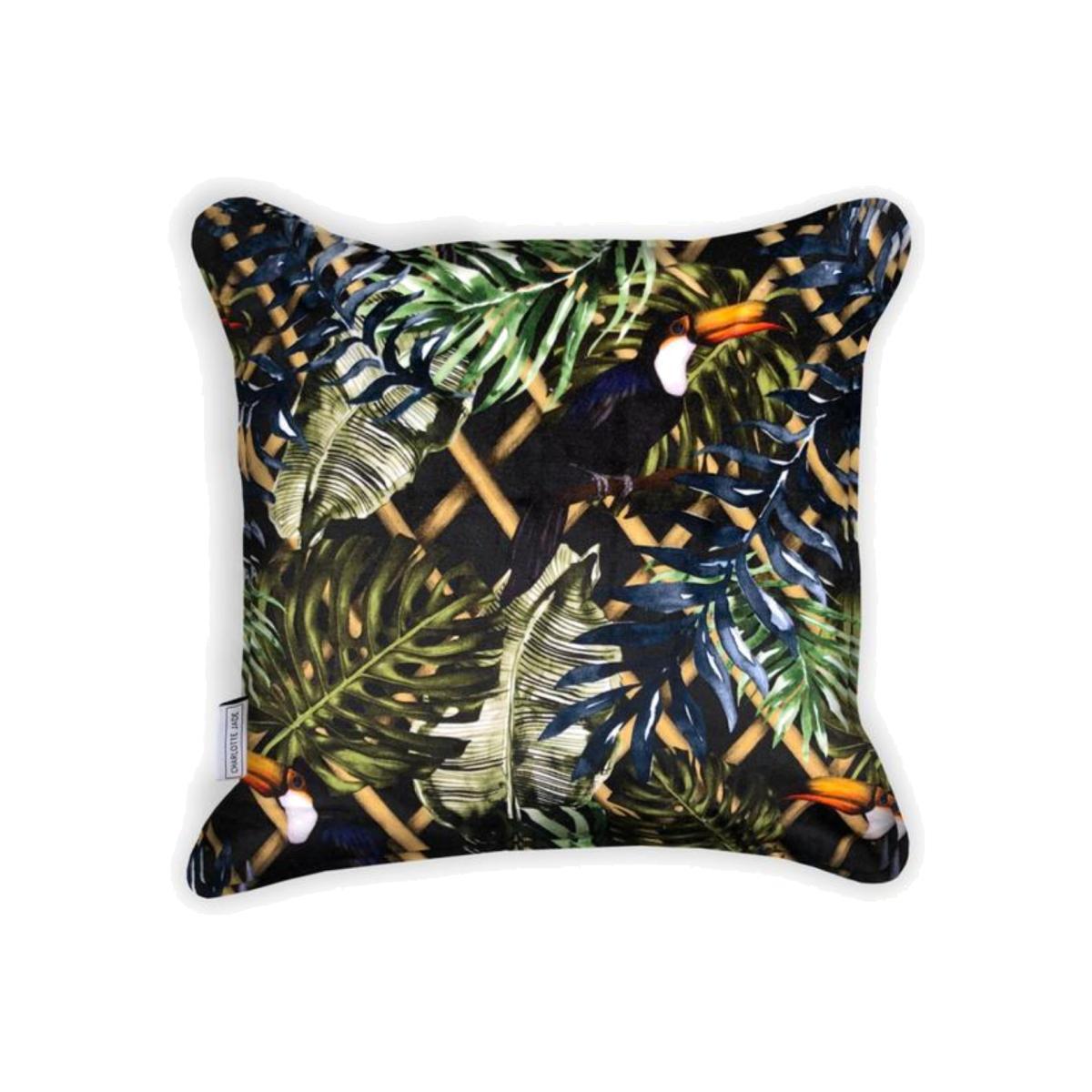 Wild Garden is inspired by the combination of a wild, tropical jungle with the conventional British back garden. The rigid geometric pattern of a typical English garden trellis contrasts dramatically with lush green jungle foliage, combining two landscapes that are worlds apart. Perching in the canopy is the beautiful exotic Toucan, bringing warmth to the design with the rich colours of its impressive and distinctive bill. Wild Garden is one of our cushions and this design really brings the beauty of nature into your interiors.