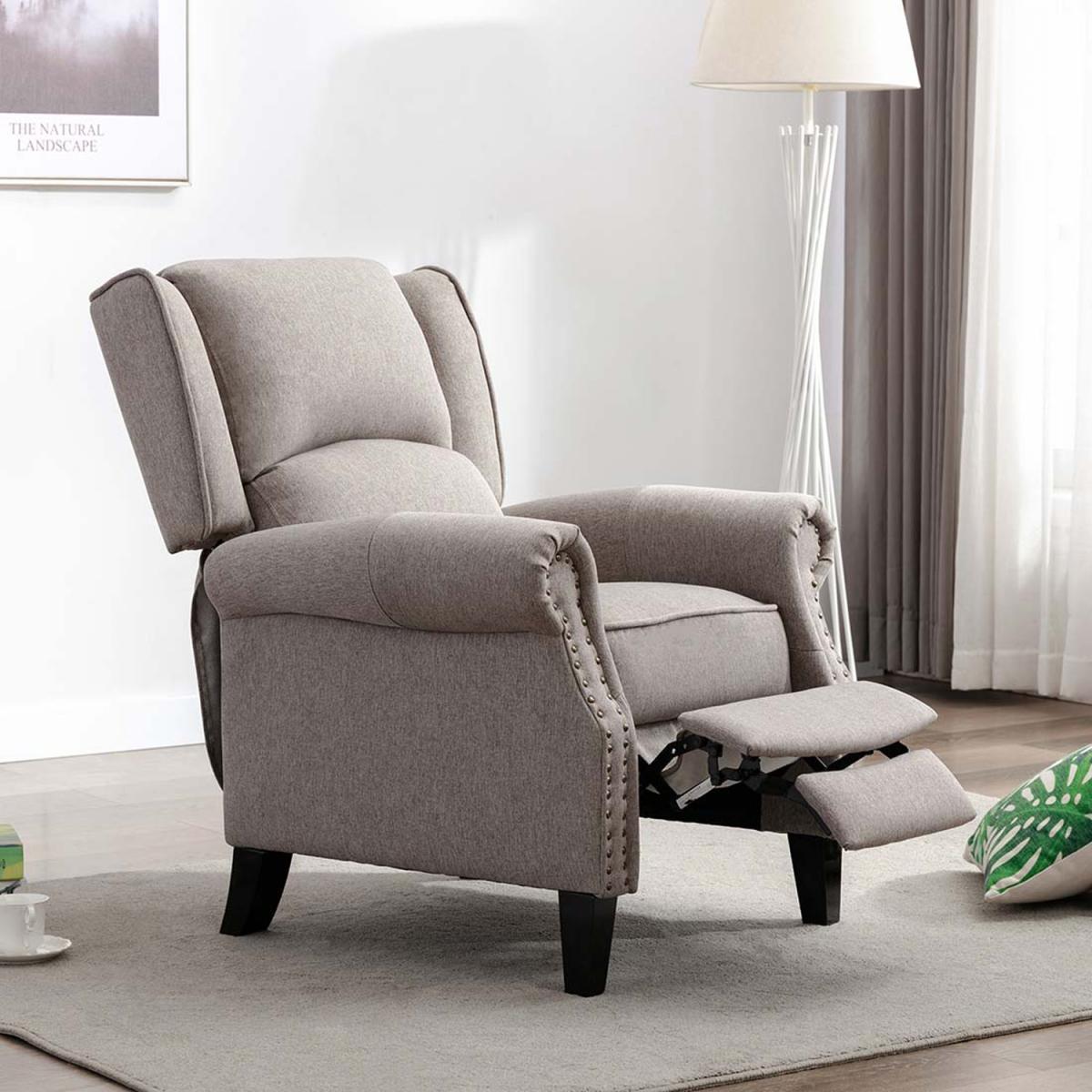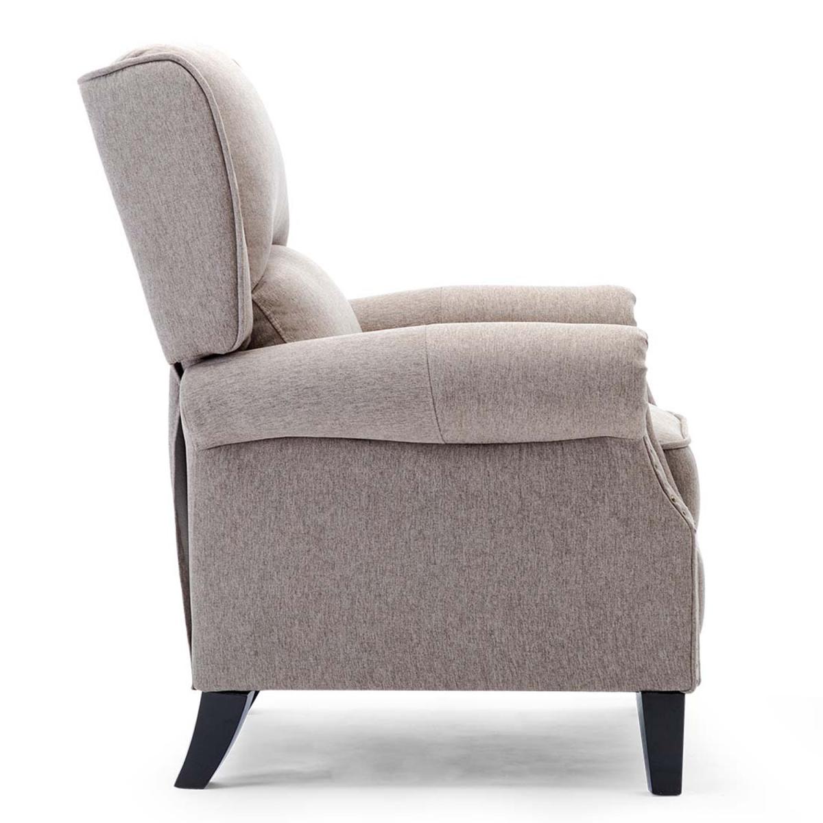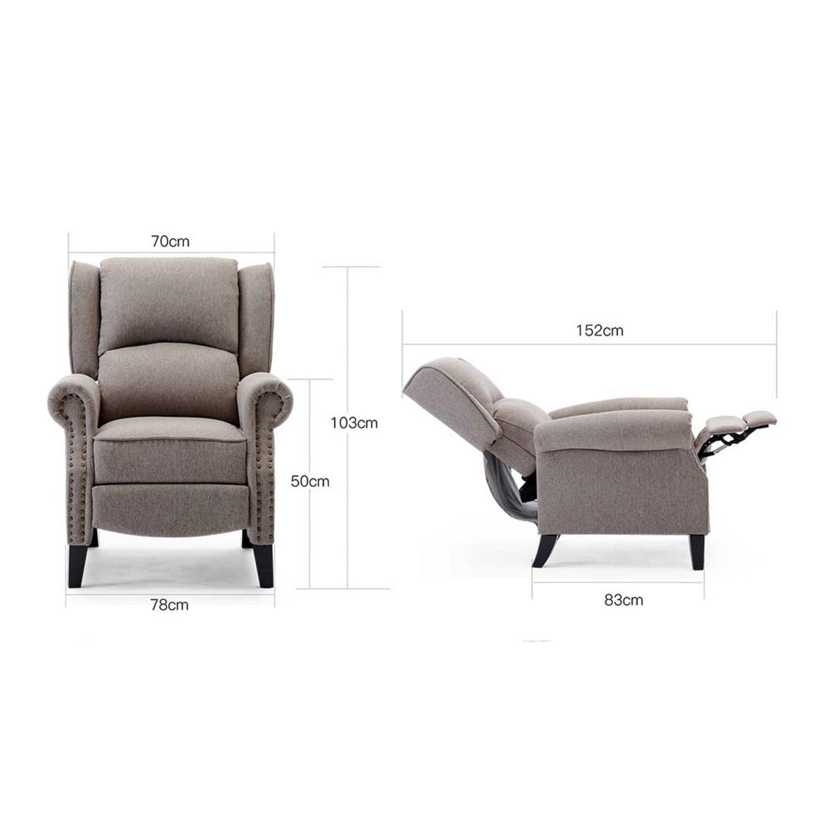 There is no need to choose between style and comfort with this Charlotte chair, it is the perfect mix of both. Our super chic Charlotte Pushback Recliner Armchair is the complete package featuring a discreet push and glide reclining function and striking stud details. Simply sit down, push back and when you are ready, gently push back and the chair will glide back into an upright position. Not only will your body be fully supported, but the linen fabric will ensure your body stays at the optimum temperature. Available in two gorgeous shades, grey and pumice.