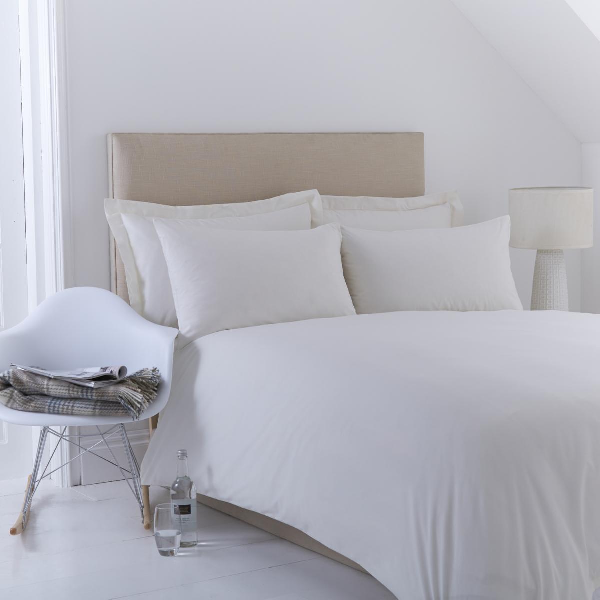 Material Quality Crafted from a high quality 180 thread count, 50/50 polycotton percale with 2424's yarns, this duvet cover is not only durable but also offers a soft, inviting touch. Size Packaging Sizes below. Sold individually Colours Available: White ivory rich cream light blue duck egg meadow Easy Care Machine washable and can be tumble dried Sample Cuttings Available Please contact our team to request a sample cutting. Matching Products Duvet Covers, Flat Sheets Fitted Sheets, Platform Valances and Fitted Valances are also available.