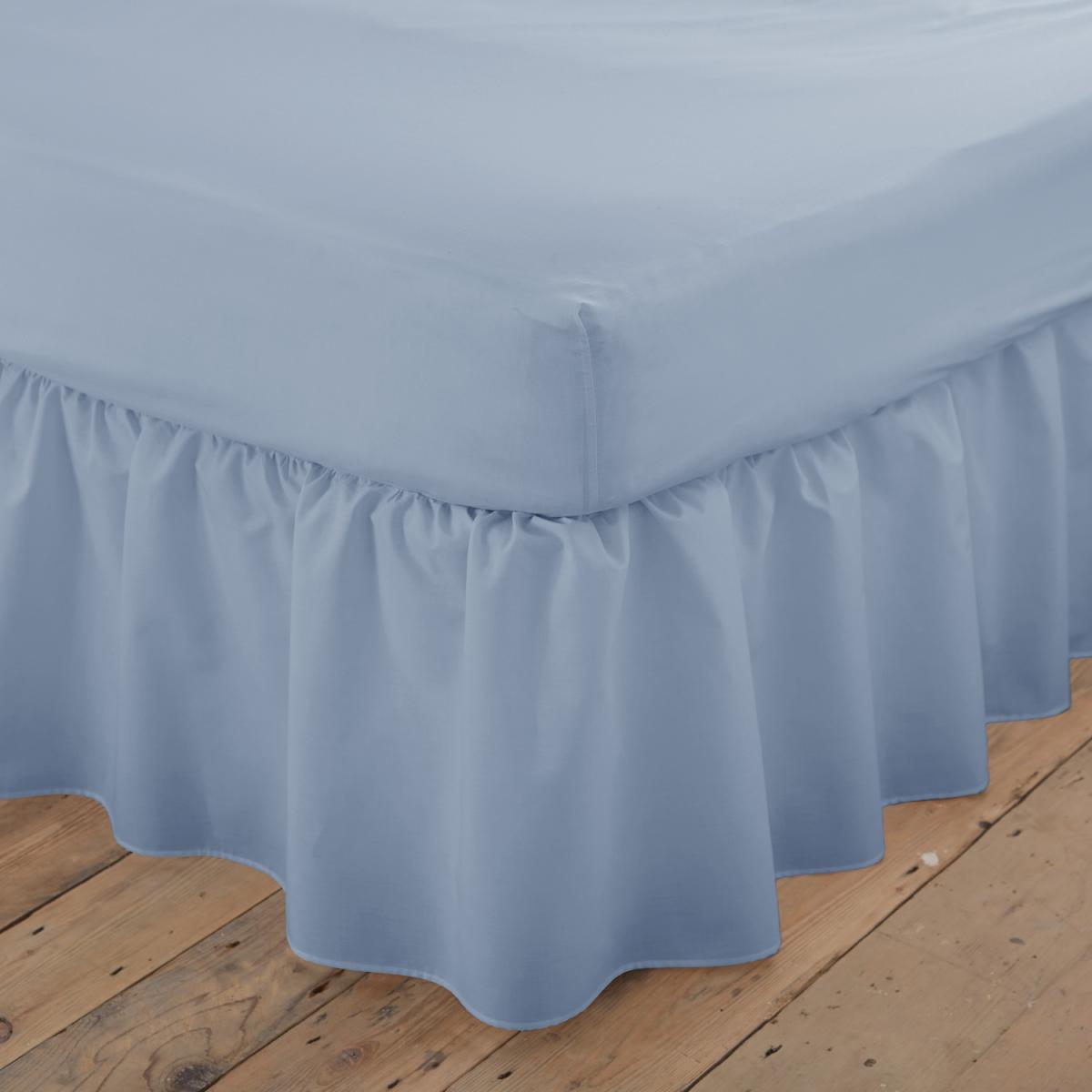Add a touch of elegance and traditional charm to your bedroom with our frilled platform valance sheets. These valances sit between your mattress and bed base, draping gracefully to the floor with their beautiful frills. Perfect for those who love a classic bedroom look, our frilled valances come in an array of colours to match any bedroom style. Material Quality. Crafted from a quality 144 thread count, 5050 polycotton with 2424's yarns, this frilled, platform valance is not only durable but also offers a soft, inviting touch.
