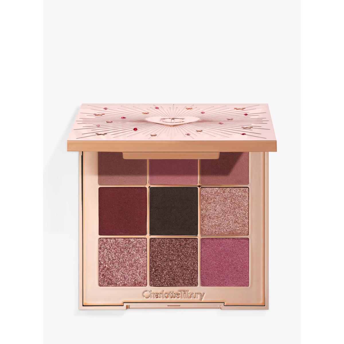 Charlotte’s mantra: "Just swipe, glide and press to pop!" Charlotte Tilbury MBE. Nine beautifying shades: Futuristic pink future matte Cyber rose future matte Supernova smoulder future matte Virtual romance future matte Offline future matte Pillow talk beautyverse party topper Pixie pink crystal glow Rose gold realm crystal glow Digital pink crystal glow What makes it magic? Get the pillow talk effect this holiday season for eyes that look dreamier, bigger and brighter It’s every #pinkcore trend in one palette One 9-pan palette, limitless iconic pillow talk party looks Charlotte has decoded the disco ball! the duo-chrome pearls reflect the light like a disco ball! Futuristic finishes and eye-gilding shades that play with the light as you dance all night! Future matte shades: cream-to-powder transformative texture, glides on like silk for a soft-focus veil of colour Crystal glow shades: gild your eyes in crystal light for a buildable, customisable shimmering foil finish Party topper shade reflects the light for molten eyes that magnetise