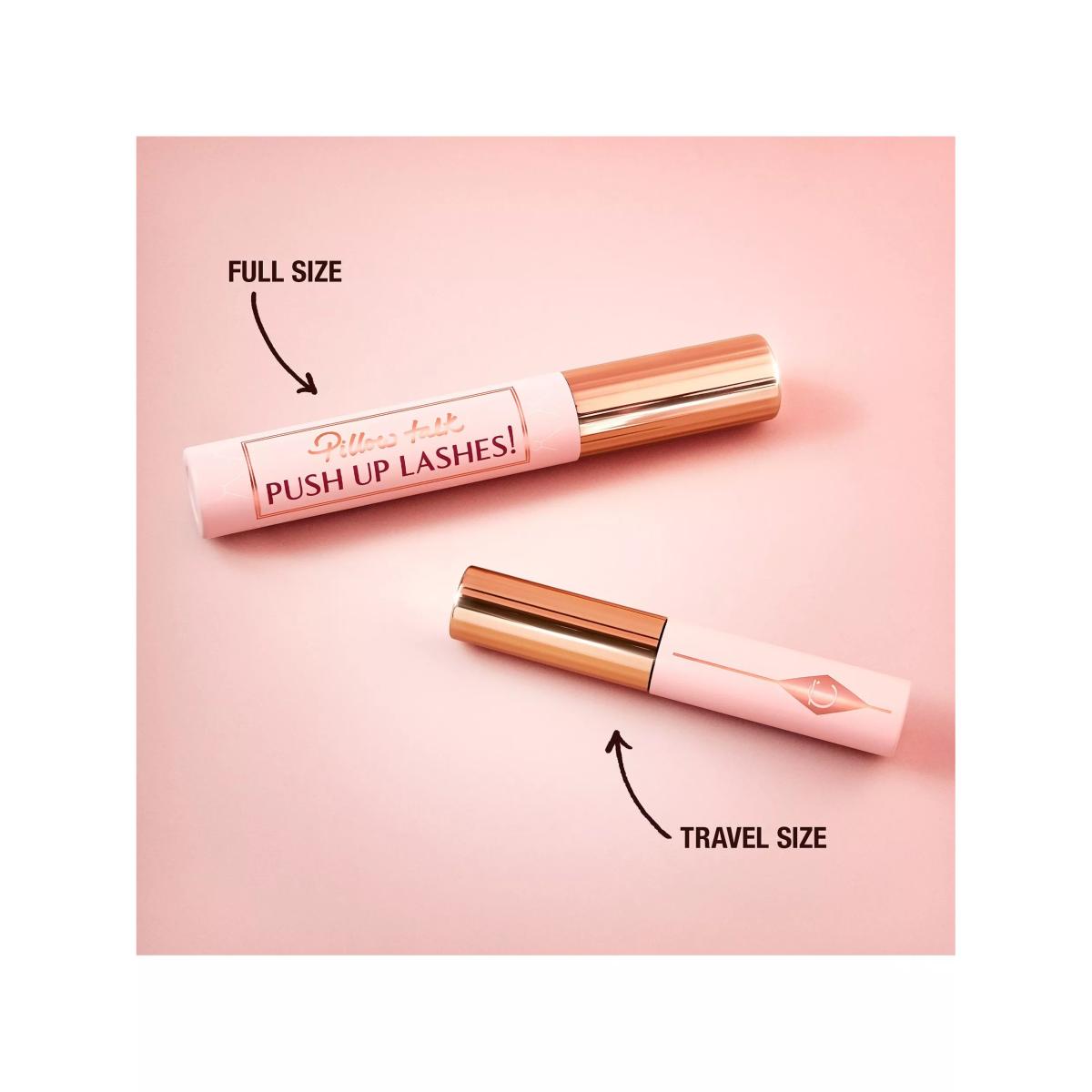 "Pillow Talk Push Up Lashes is my new lash innovation and the secret to instant length, weightless volume, stretch and a 24-hour vertical life effect for the lashes of your dreams! It’s mascara confidence. Pillow Talk Push Up Lashes is your beauty amplifier to make your eyes look bigger, brighter and more awake! Make your eye colour pop and create the perfect Pillow Talk lash; the glossiest, lifted, defined, stretch-effect, separated, voluminous, beautiful lashes." Charlotte Tilbury. 3 Pillow Talk beauty icons sold every minute. * *Based on global sales figures for Pillow Talk single products from March 2019 -February 2020. What makes it magic: 96% agree lashes look magnified and amplified* 96% agree mascara visibly lengthens the lashes* 93% agree mascara gives lashes a voluminous definition* *Blind tested on 31 people after one application. Innovation brush - the injection moulded, micro pro precision paddle brush with ‘load, comb and lift’ technology lifts like air, vertically painting each individual lash, even the tiniest ones! The diamond-shaped bristles on each side of the brush follow the lash architecture, reading the fan of the lashes for a magnifying and amplifying eye-opening effect! Push Up Lash-Lifting Polymer – Derived from the Larch Tree, this natural gummy stretch and flex film former helps create a push up vertical lip and hold of the lashes Lightweight Natural Waxes – Carnauba wax also known as the ‘Queen of Waxes’ and Microcrystalline wax add body and texture to the formula for weightless volume and a false-lash effect! ‘Kerestore™ 2.0’ Keratin – Creates a super-strong conditioning effect on individual hair fibres to create a thicker-look and feel on the lashes Super black shade - the super jet black shade adds instant intensity, volume and definition, enhancing the look of your eye colour and your lashes! Smudge proof, humidity-proof and no lash curlers needed! Kerestore™ is a Trade Mark of the Croda Group of Companies.
