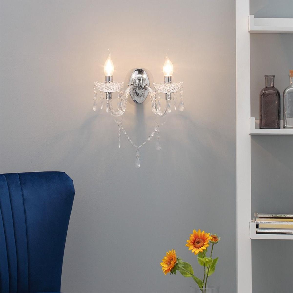 As well as being one of the best ways to bring together an interior’s designs, wall lights are also a fantastic addition to any space looking for an ambient form of illumination. This 2 arm wall light has an elegant curved design that’s decorated with clear droplets and beading, giving a sophisticated look to the fitting and the decor that it’s used within. Complete with a chrome finish, this gorgeous wall light is sure to offer a wonderful glow to any interior from classic to modern.