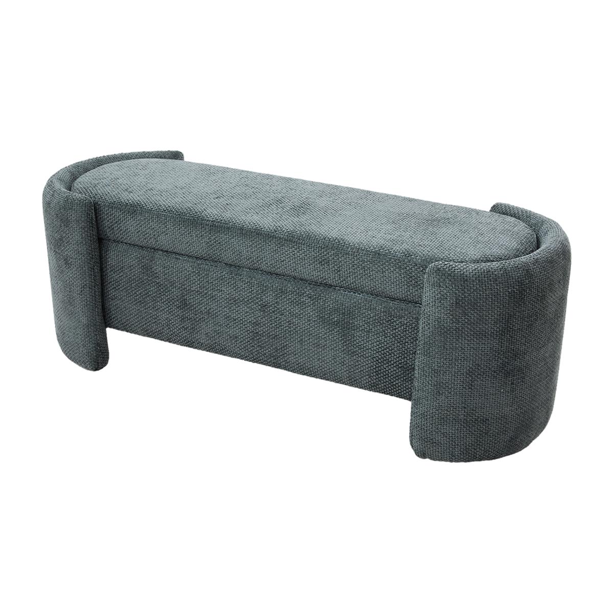 Add texture to your living space with this storage bench, upholstered in luxurious chenille fabric for a charming feel. The gracefully curved sides complement its design, while the high-density sponge interior offers lasting shape and support. Below the seat, a hidden storage compartment conveniently holds magazines, scarves, and other essentials, keeping your space neat and organized.