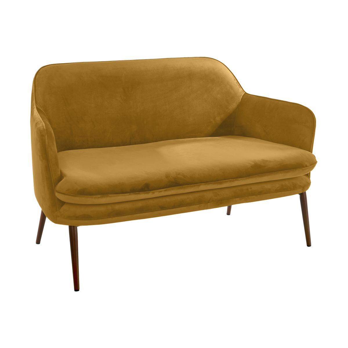 A vintage and chic style for this sofa covered in luxurious velvet. Silky, velvety and warm, this fabric embodies a refined and glamorous spirit. The intense and vibrant color brings a convivial and cozy touch to our interiors. Metal tapered legs complete the fifties look of this sofa. This small sofa is ideal for tight spaces. It is perfect as an extra sofa or to create a relaxing corner in all rooms of the house: bedroom, entry, dressing room.
