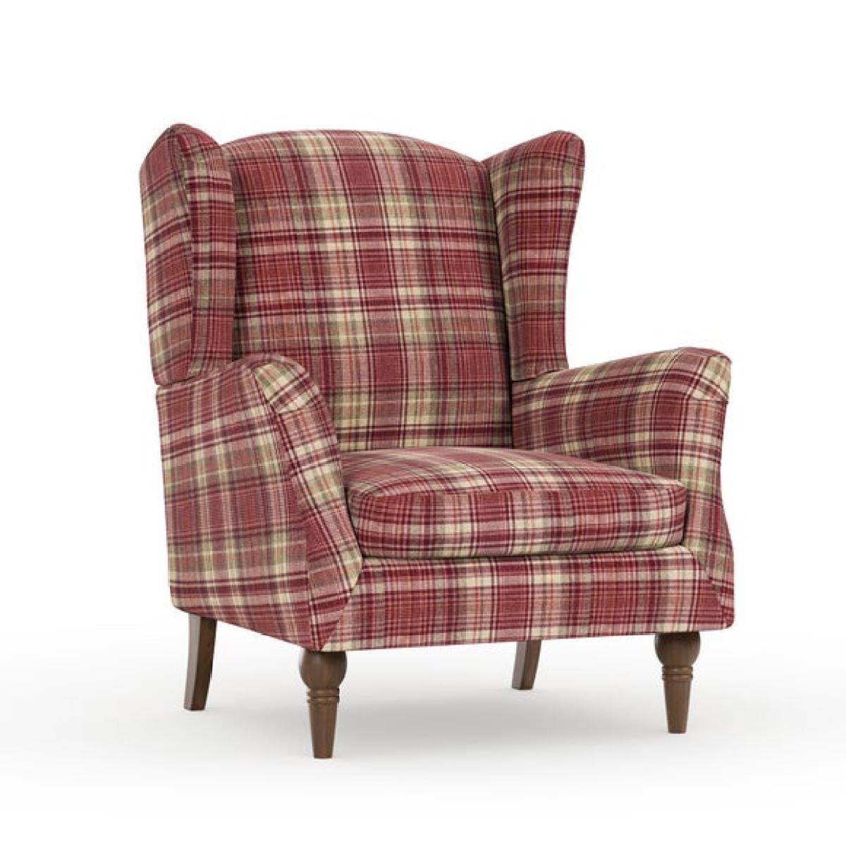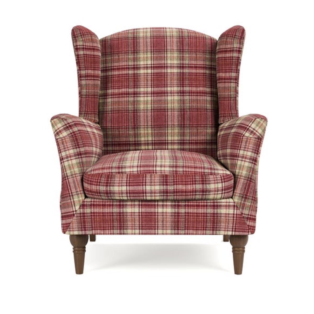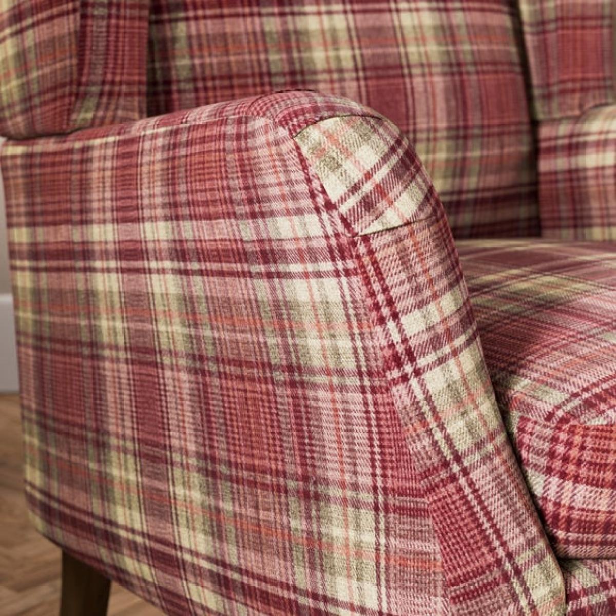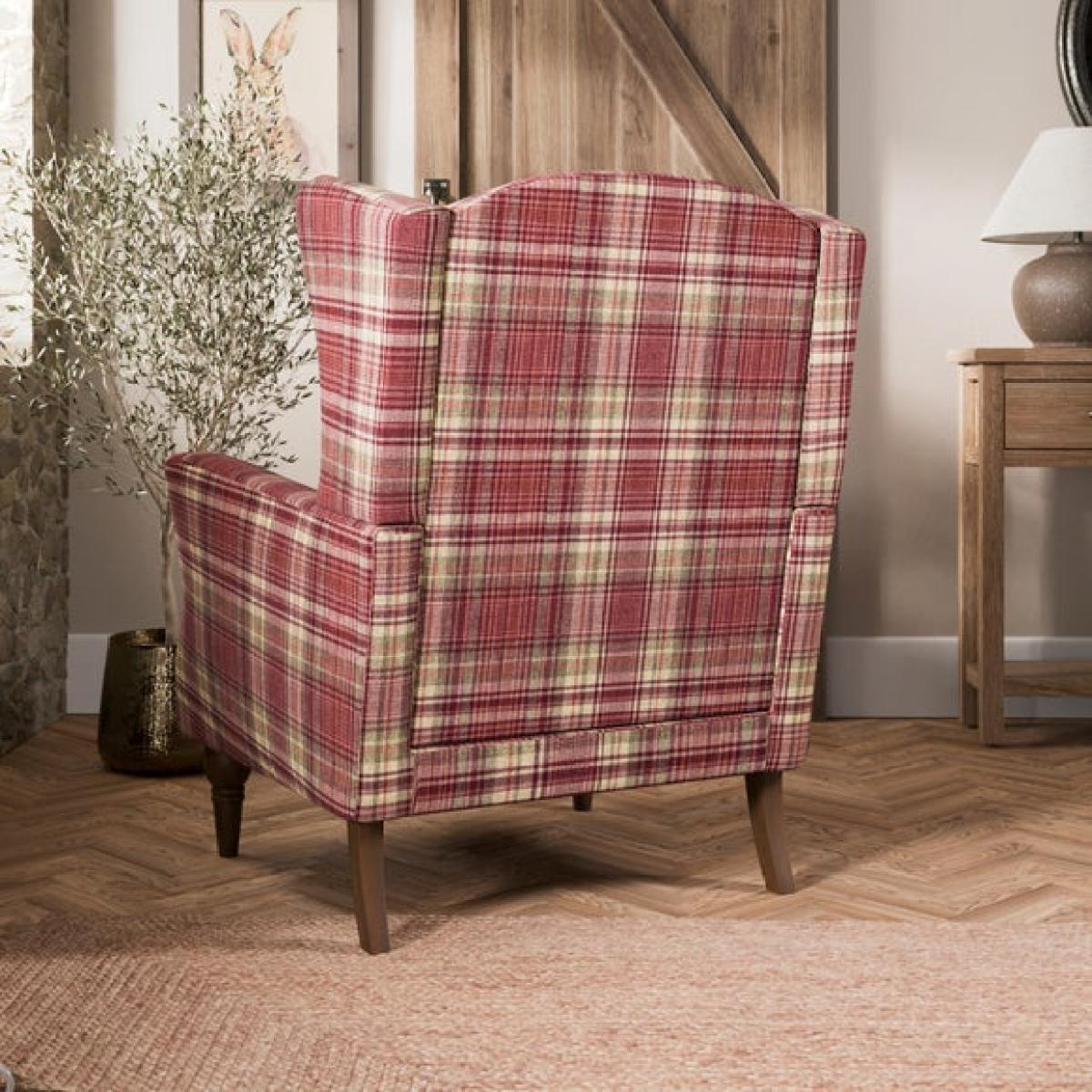 * Stylish, classic chair * Larger size * Sloped, winged arms * Soft, checked print upholstery A rich burgundy check pattern gives this chair a warm, traditional feel that’s perfect for adding character to your home. The structured shape, with its domed arms and winged back, offers a supportive and stylish seat that’s ideal for relaxing with a book or enjoying a quiet evening.