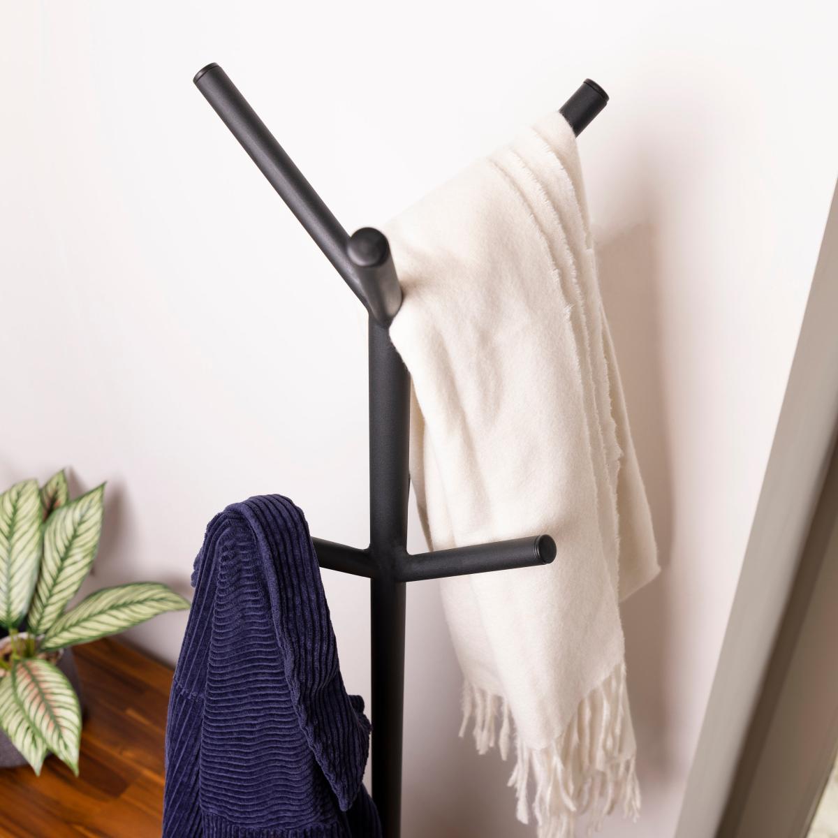 The black coat stand is a versatile and contemporary piece that works particularly well in modern or minimalist interiors. Its sleek design helps to keep entryways organised without feeling bulky, while the black finish adds a touch of sophistication that can complement various colour palettes. I love to style it with a mix of everyday coats and accessories, adding coordinating baskets or trays nearby for keys or umbrellas. Practical tips include placing it near the door for convenience and pairing it with a small bench or shoe rack underneath for a coordinated look. It's perfect for establishing a clean, clutter-free entrance that still feels welcoming.