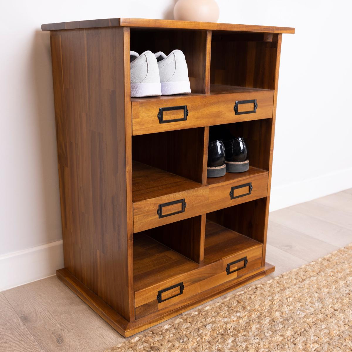 I’m a fan of this Charnwood shoe locker for its compact footprint and rich brown finish - it adds instant warmth to an entrance hall without overwhelming the space. The simple lines and label-holder details mean it slips easily into both modern Scandi schemes and more traditional or rustic settings. For styling, keep the top surface clear or topped with a slim tray for keys and a small plant, then organise footwear by type or season in each cubby. If you need to hide less-used boots, simply slide in a low wicker basket for a tidier look.