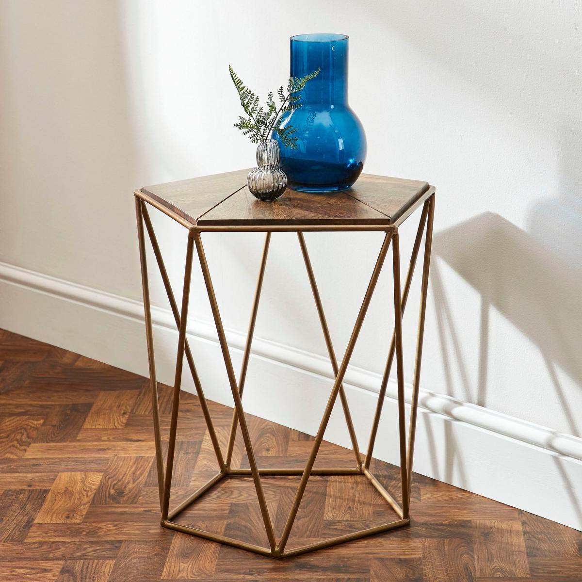 Dunelm Exclusive - Designed and Developed by Dunelm Inspired by clean, simplistic styling, this fully assembled side table features a mango wood top and a stylish, brass effect finished frame.