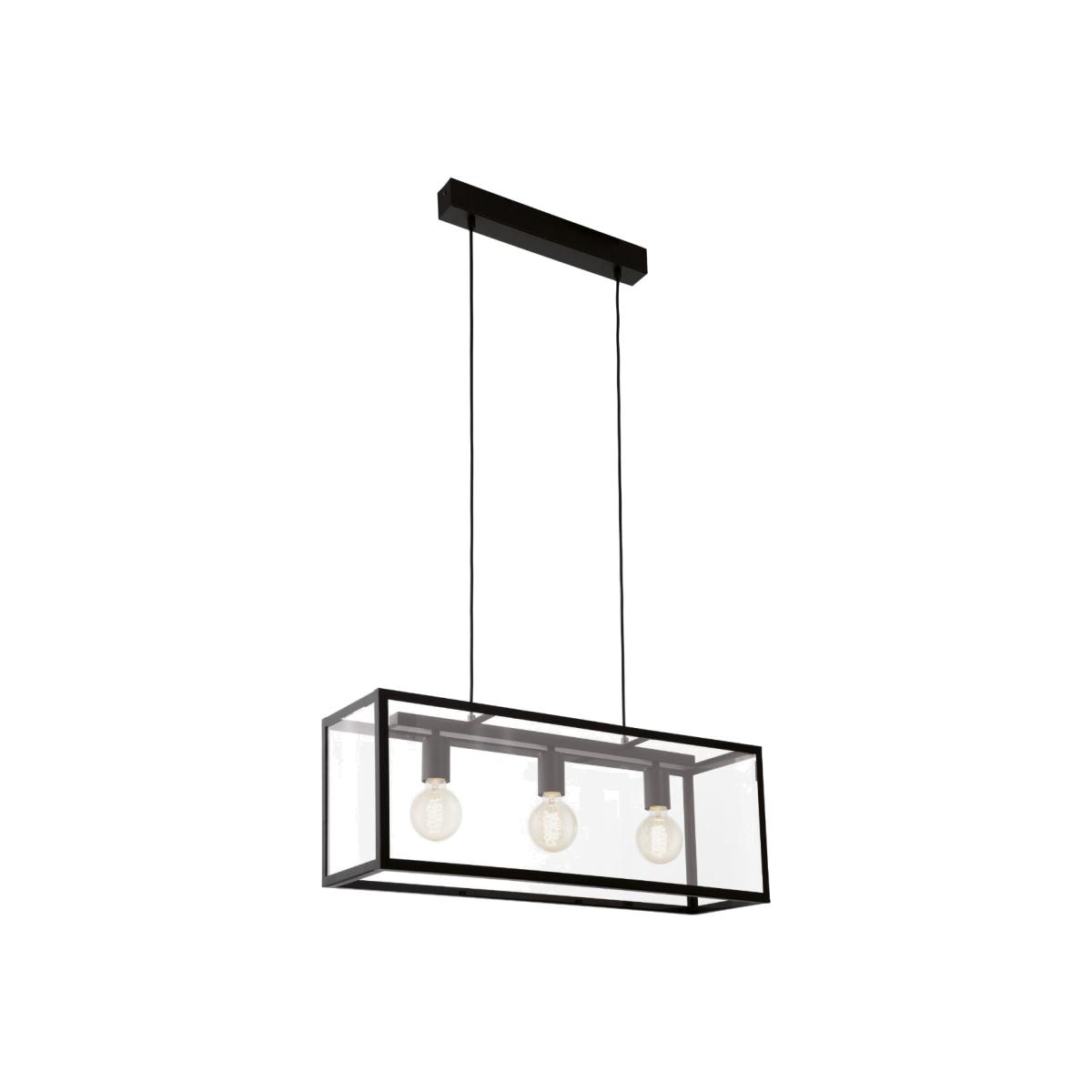 Industrial 3 light ceiling bar boasting black finish and clear glass. Update your home with the stunning Charterhouse ceiling pendant. The fitting boasts a matt black finish with a box design, complete with clear glass panels. This simplistic yet industrial inspired design is perfect for adding a mdoern touch to any interior space. Complete the industrial look with Pagazzi vintage bulbs.