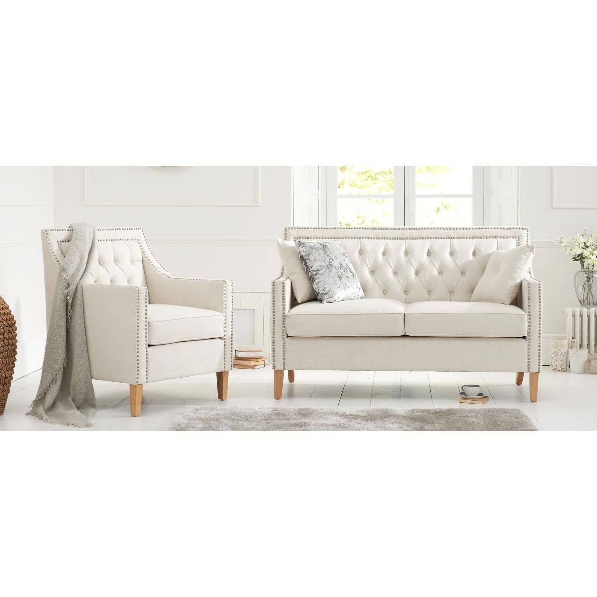The Chartwell Ivory Linen Sofa is a striking piece of furniture. Upholstered in soft linen and gorgeously studded edges bring class and style in to any living room