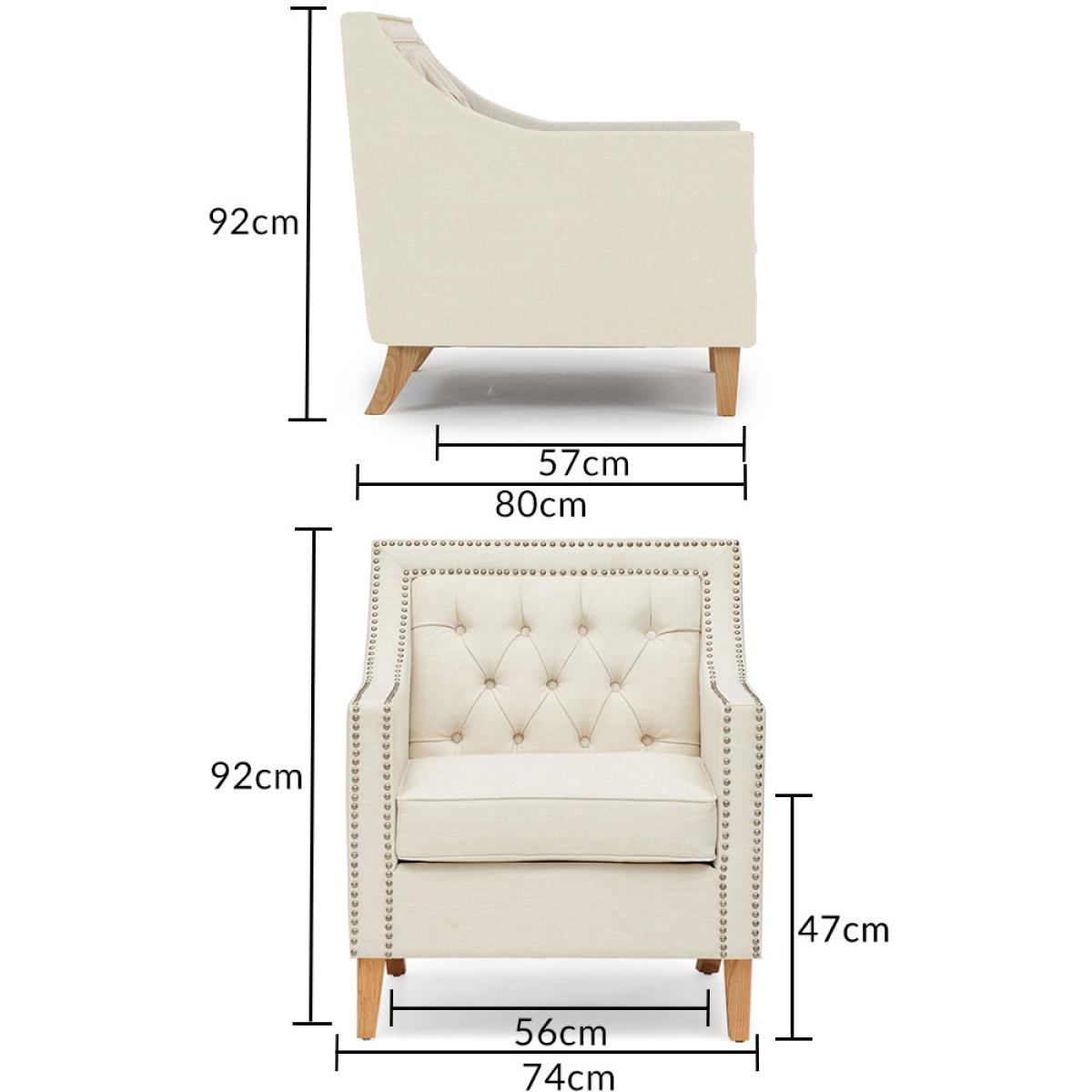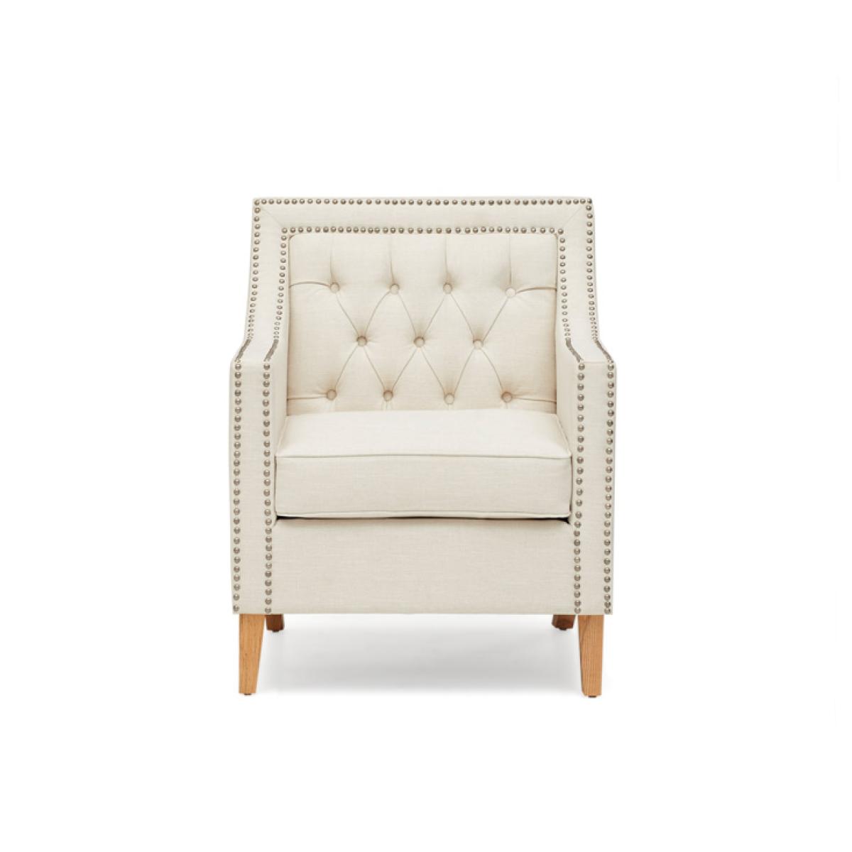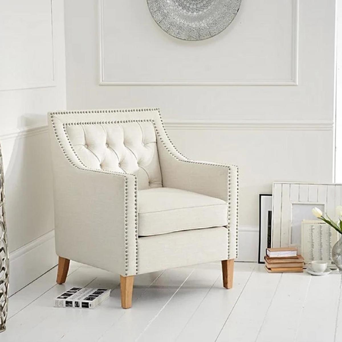 The Chartwell Ivory Armchair is a modern take on the classic chesterfield design. Square in shape and studded this range looks good in any living room