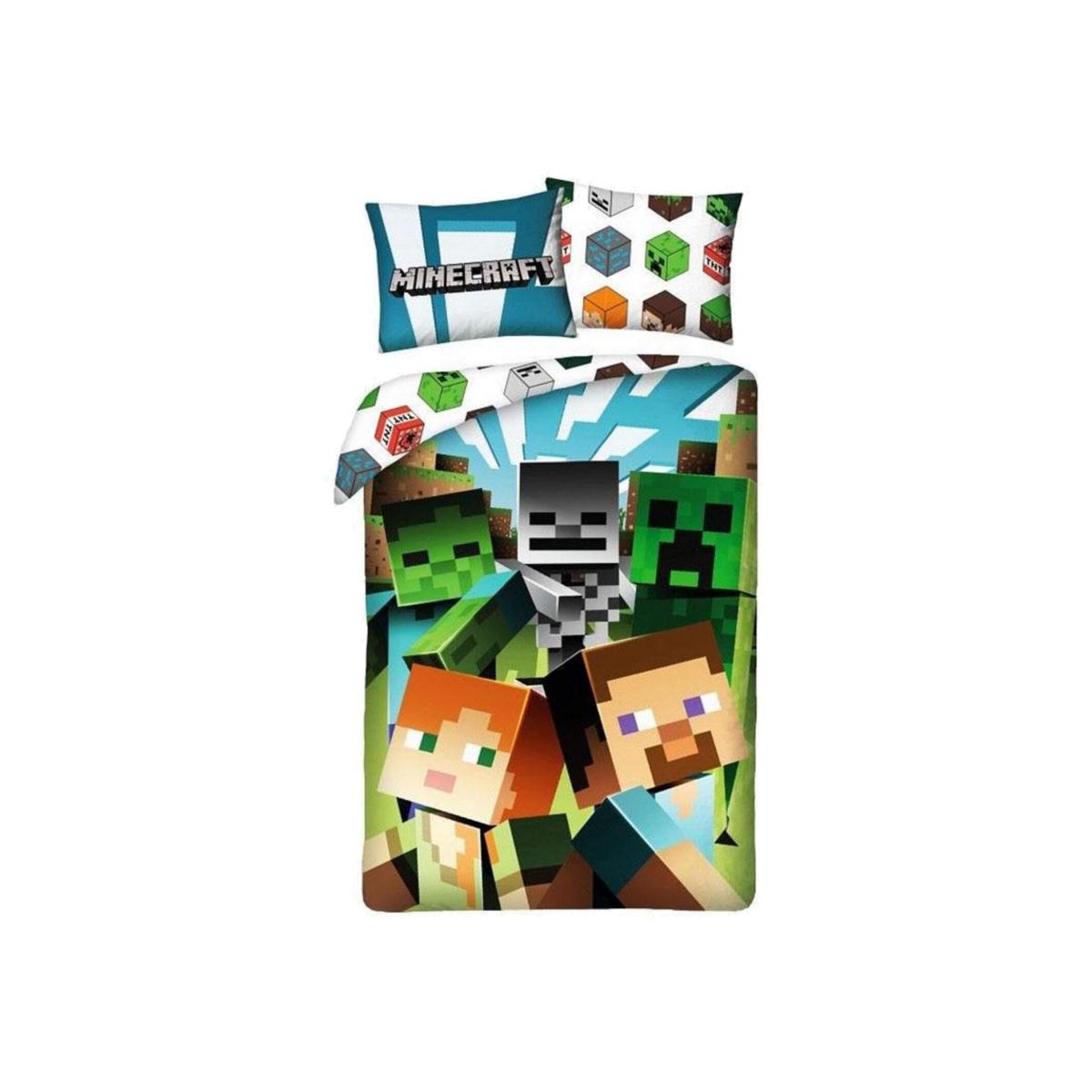 This reversible Minecraft Chase single duvet cover set is ideal for any fans of the popular game. The design features an epic Minecraft scene, with Alex and Steve on the run from a Creeper, a skeleton and a zombie, while the reverse has a repeat pattern of the character's faces, as well as diamond ore, TNT and dirt blocks on a white background. Made from 100 cotton, this official bedding set can be machine washed and tumble dried on a cool setting and comes with a large European size pillowcase.