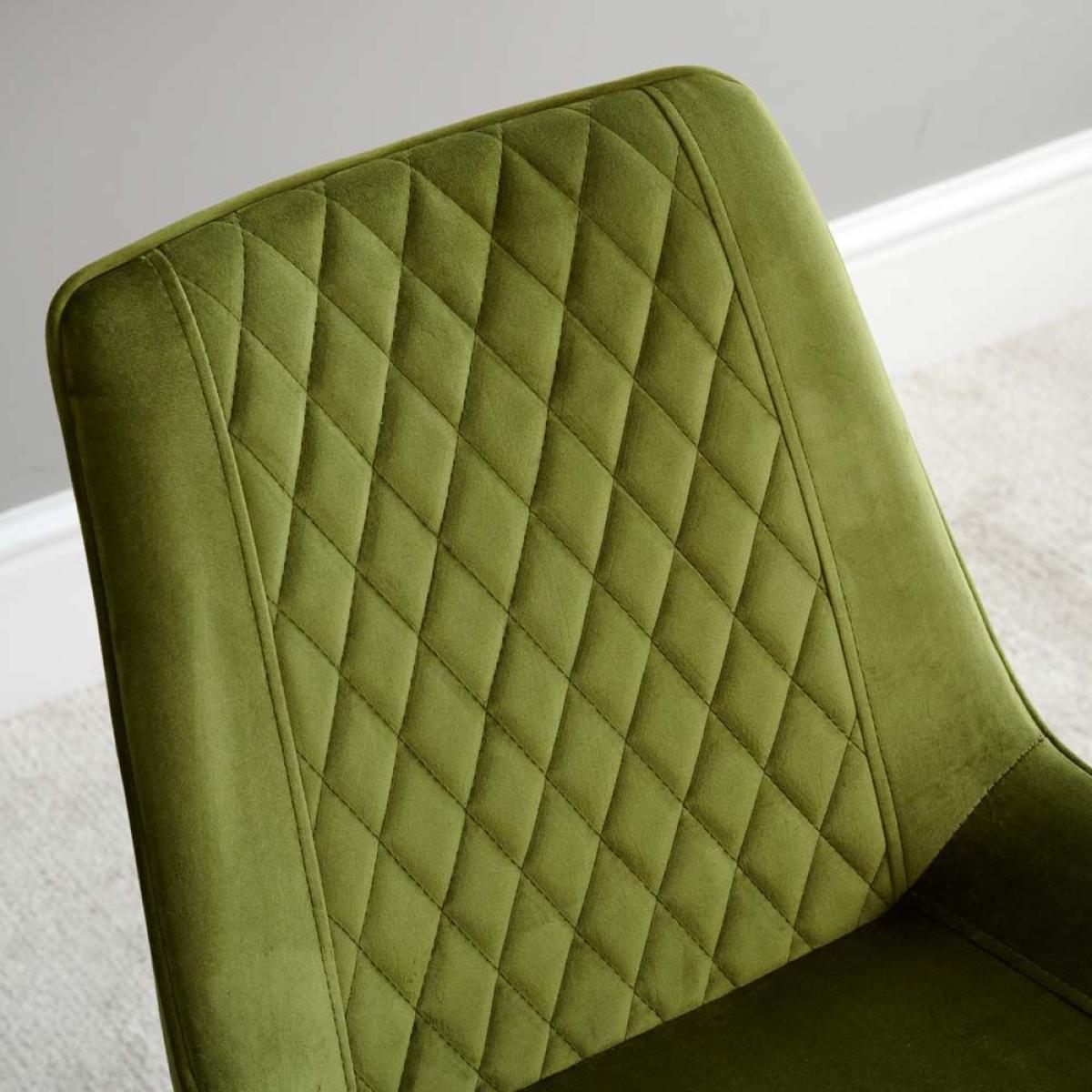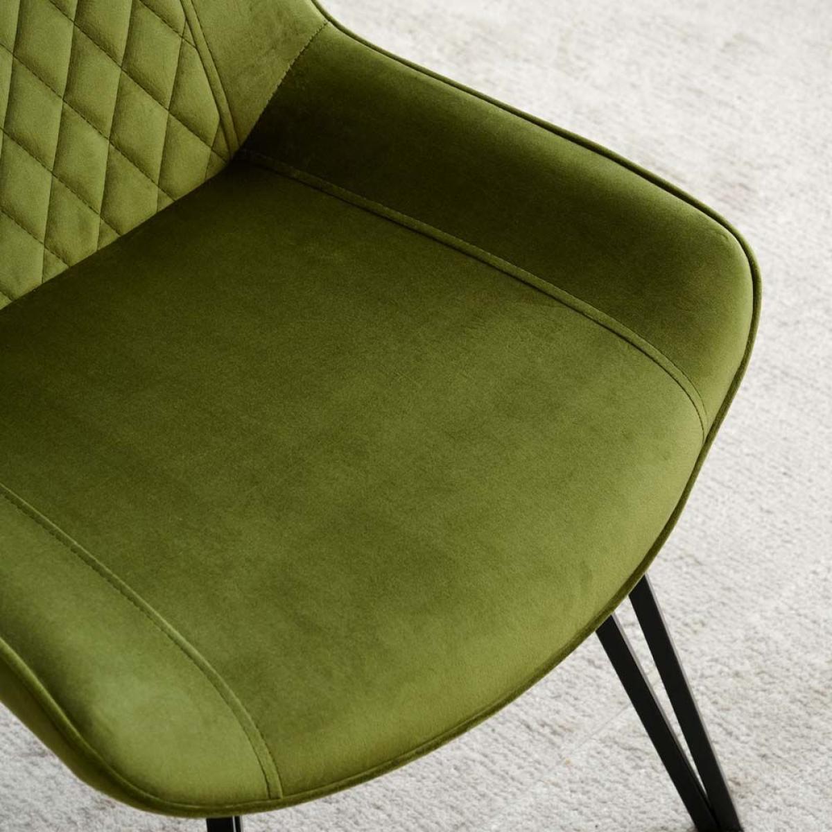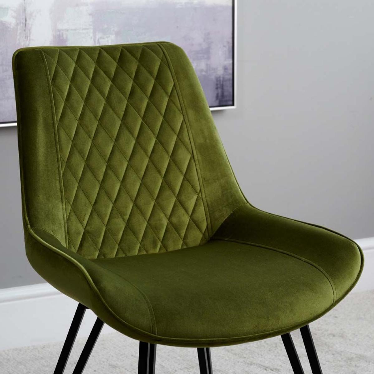 The sumptuous Chase Green Velvet Dining Chairs are perfectly comfortable and supportive, featuring a slightly bucketed seat with quilted upholstery and piping details, and industrial style black powder coated metal legs for support. The Chase green velvet dining chairs are sold as a pair and are also available in four other colour tones: Light Blue, Light Grey, Teal and Gold. Dimensions: W54cm x D63cm x H87cm Seat Height 48cm Velvet Upholstery Industrial style metal legs. Simple self assembly