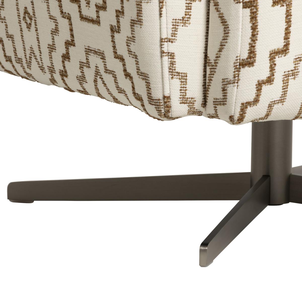 This armchair is a versatile addition that works well in both contemporary and mid-century inspired interiors thanks to its clean lines and subtle pattern. I love how its swivel function adds practicality, making it perfect for living rooms or home offices where flexibility and comfort are key. When styling, consider pairing it with neutral or textured fabrics to let the patterned fabric stand out, and use it as a statement piece around a simple coffee table or beside a console. Practical tips include blending it with layered textiles, such as throws and cushions, to create a cosy yet polished look, and positioning it in a corner to make the most of its inviting, comfortable silhouette.