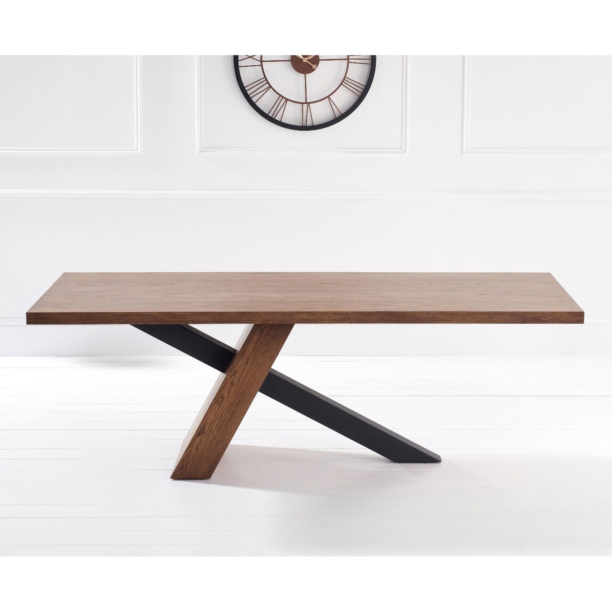 The Chateau 180cm Oak and Black Metal Dining Table brings style and sophistication to any interior. Chic and unique, the oak and metal dining table comfortably seats up to 6 people. Robustly constructed, the Chateau table features a thick table top with a contemporary finger jointed design. The contemporary dining table is supported by a thick slanted oak and veneer leg that contrasts with a durable sleek black metal leg. The Chateau 180cm Oak and Black Metal Dining Table is also available to purchase with a choice of dining chairs.