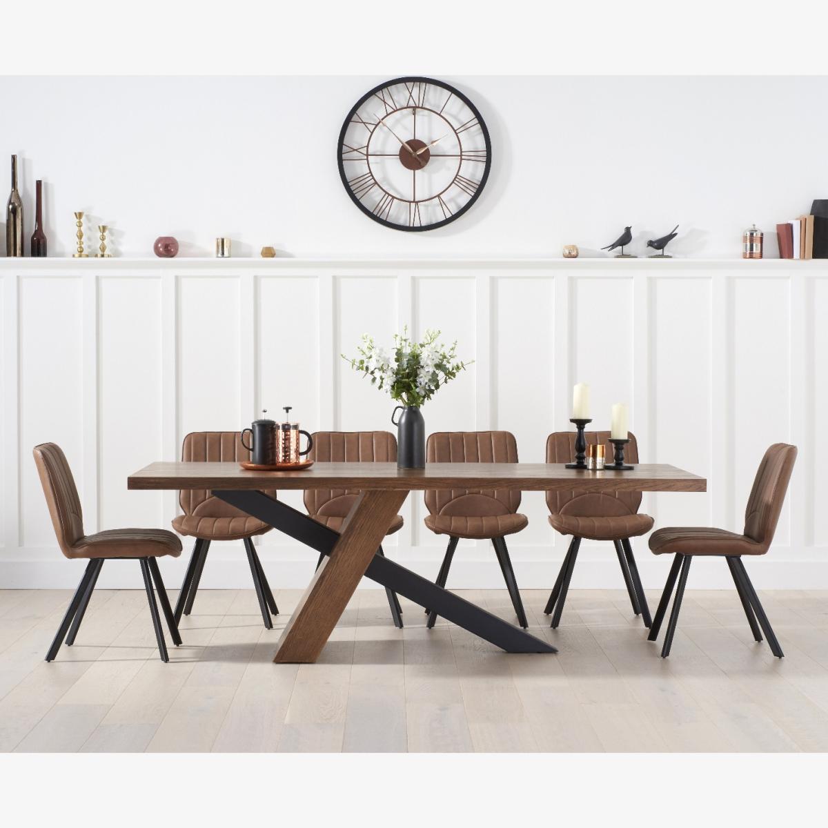 Chateau 225cm Black Leg Industrial Dining Table With 8 Grey Dexter Faux Leather Dining Chairs